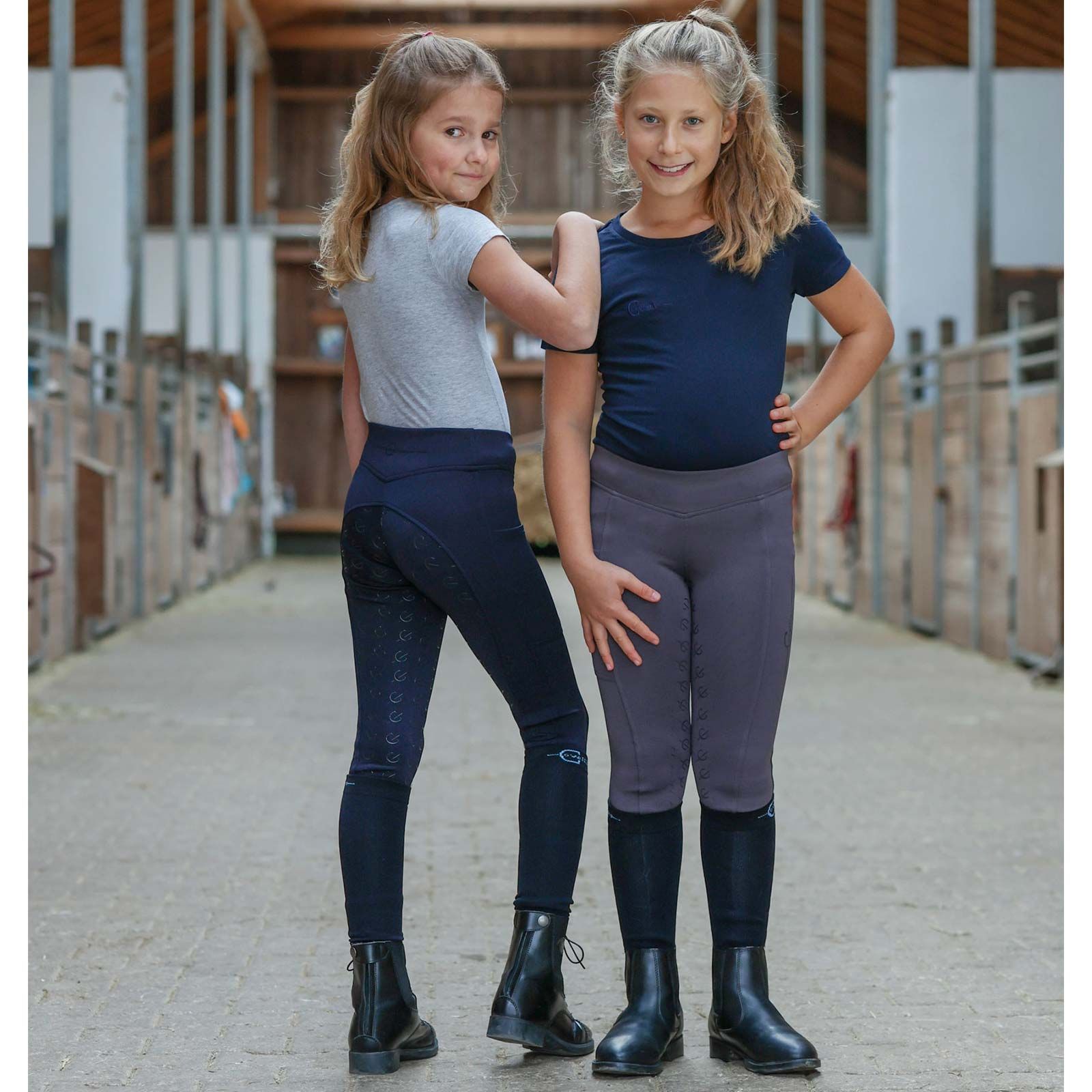 A Covalliero ClassicStar gyermek lovagló leggings ideális választás a kényelmet és praktikus tulajdonságokat kereso fiatal lovasok számára. Anyaga rendkívül rugalmas mikroszálas anyagból ez a klasszikus, egész évszakos lovagló leggings rendkívül kényelmes és korlátlan mozgásszabadságot biztosít. A extra széles derékpánt cipzár nélkül biztosítja a kényelmes illeszkedést és megakadályozza a nyomáspontok kialakulását. A praktikus mobiltelefon zseb lehetové teszi a mobiltelefon biztonságos tárolását lovaglás közben.