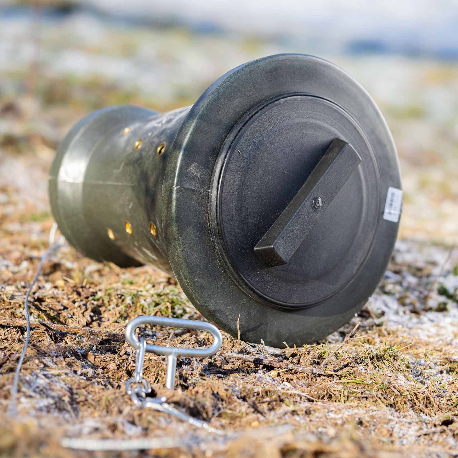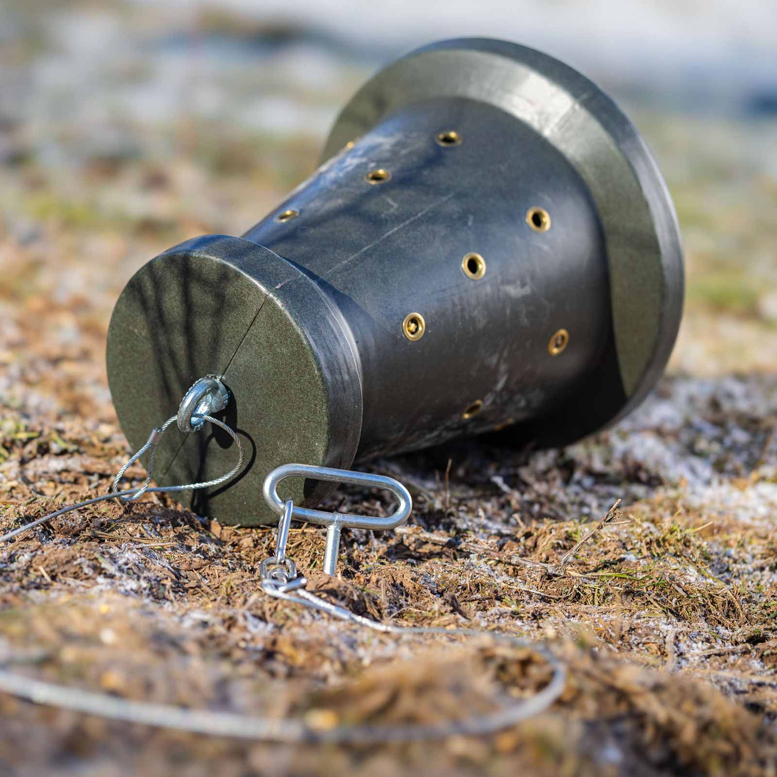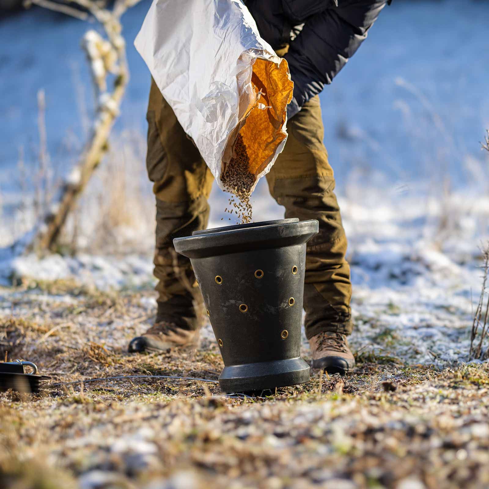 A Eurohunt Futter Cone 2.0 teljesíti az elterelés táplálásának fontos funkcióját, és kifejezetten a vaddisznó alkalmazására szolgál Kirrungenben. Az újonnan kifejlesztett tölcsér alakjával és a 14 mm vastag lyukakkal, amelyeket a fém szemlélek megerősítenek, lehetővé teszi a lassú és akár a takarmány -felszabadulást.
