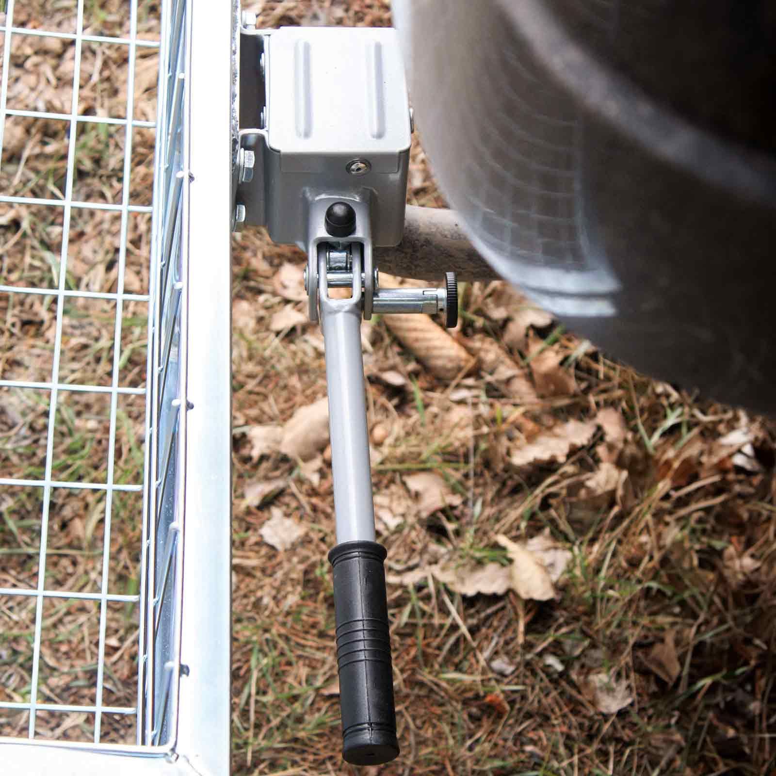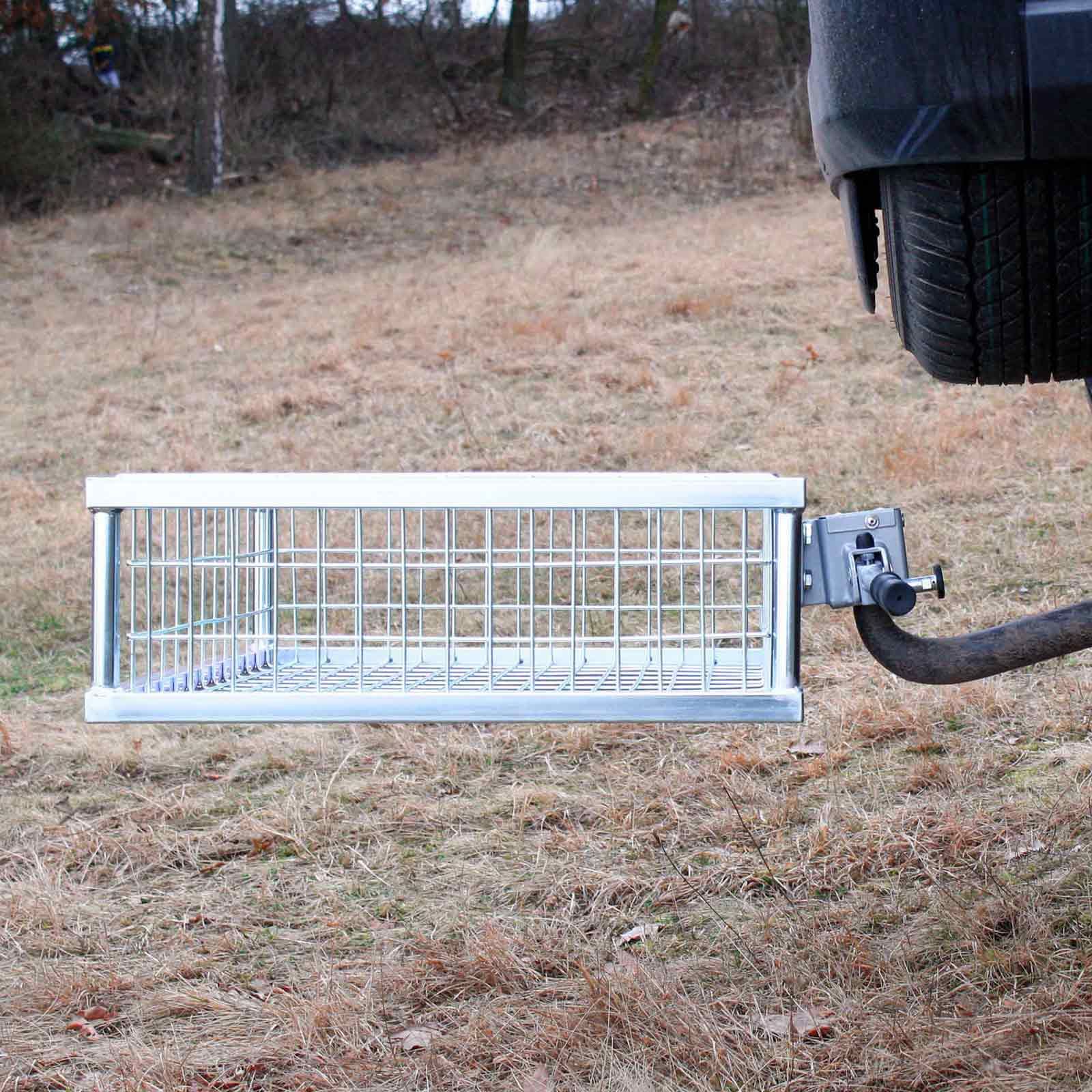A hátsó hordozó horganyzott, a 89x58,5x20 cm összekapcsolása nélkülözhetetlen eszköz mindenkinek, akinek gyakorlati és megbízható szállítási megoldására van szüksége. Akár megölt játék, ételek vagy más tárgyak, ez a hátsó hordozó elegendő helyet kínál, és könnyen összeállítható a pótkocsi kapcsolóján.