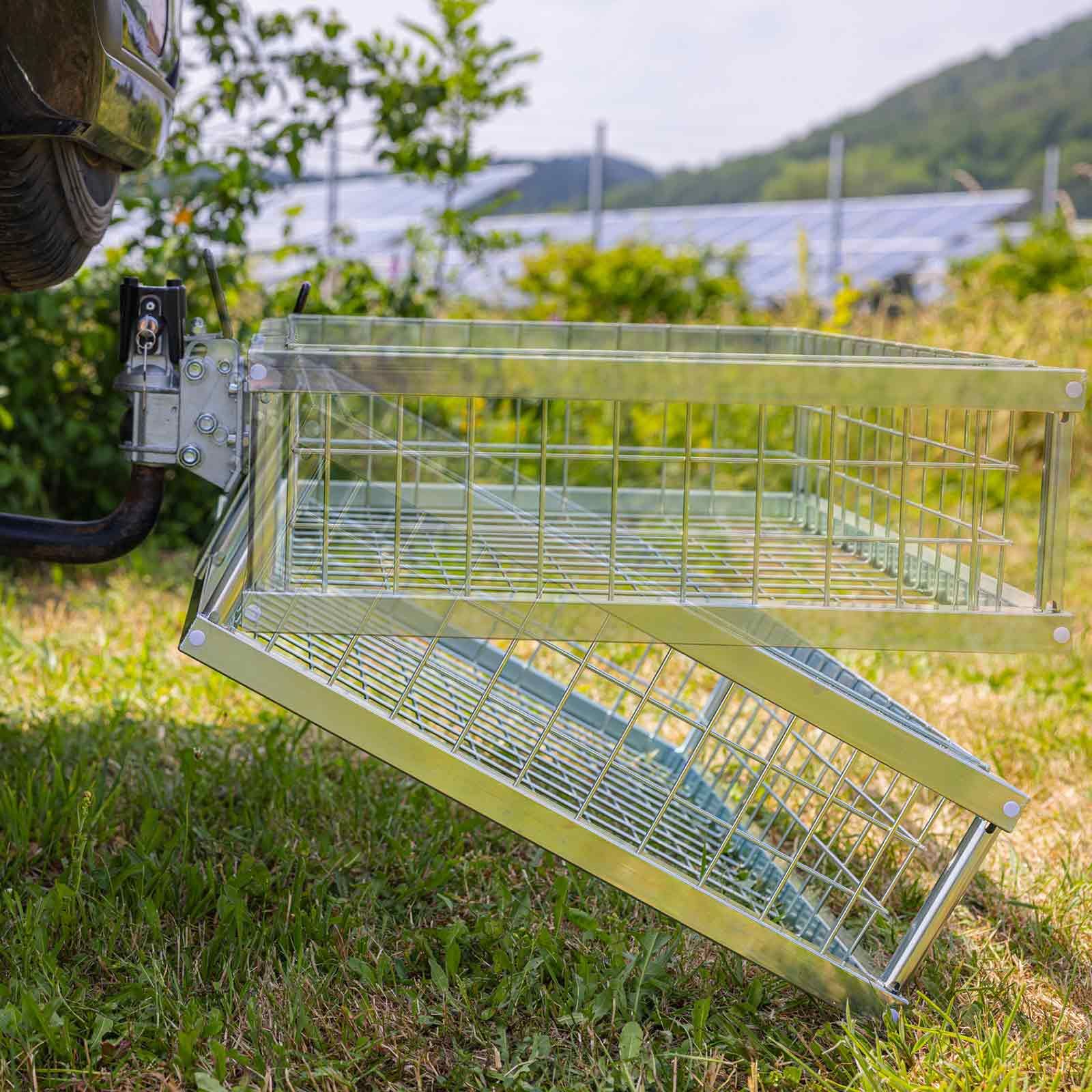 1x hátsó hordozó horganyzott, tengelykapcsoló -összecsukható 89x58,5x20 cm (megvilágítás nem szerepel a szállítás körében)