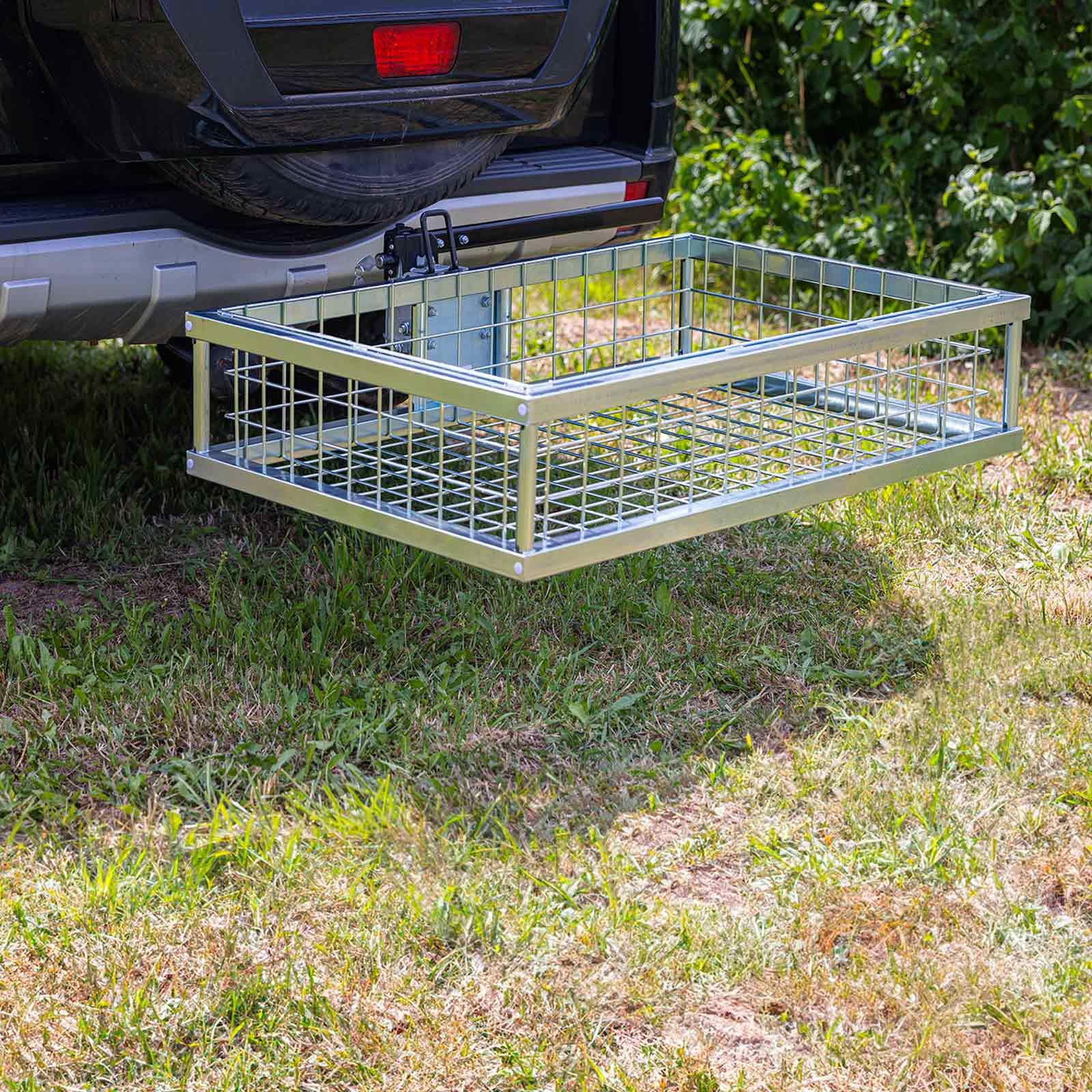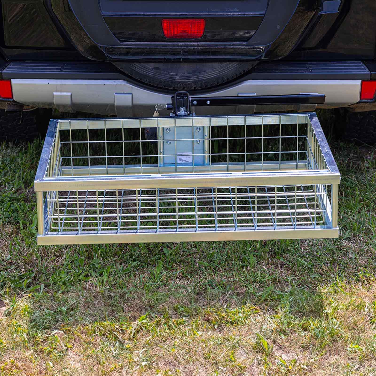 A hátsó hordozó horganyzott 89x58,5x20 cm ideális eszköz mindenkinek, akinek olyan tárgyakat kell szállítania, mint a megadott játék, az étel és még sok más. Egyszerűen be lehet szerelni a pótkocsi tengelykapcsolójára, ahol a terhelési kapacitás a maximális statikus függőleges terheléstől függ.