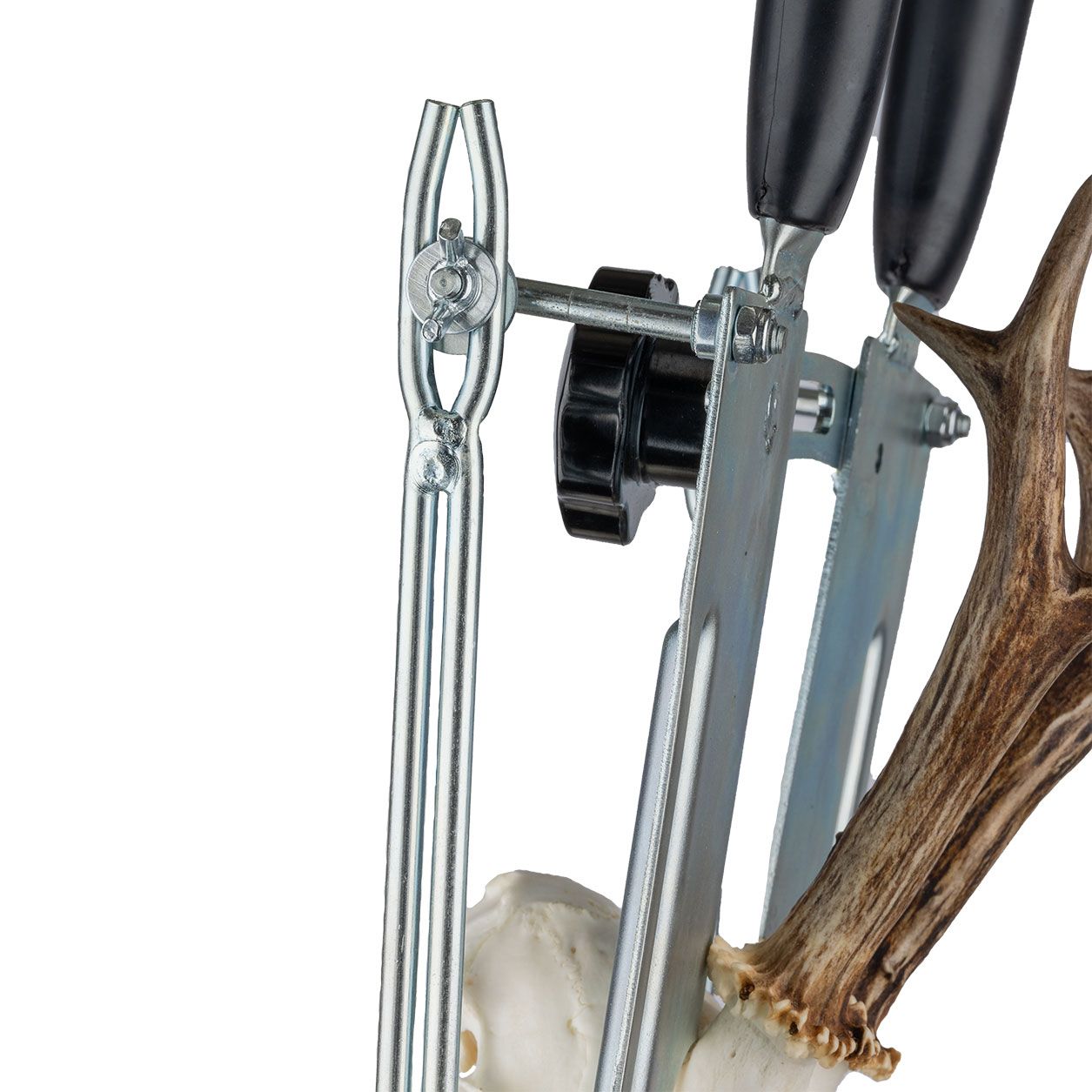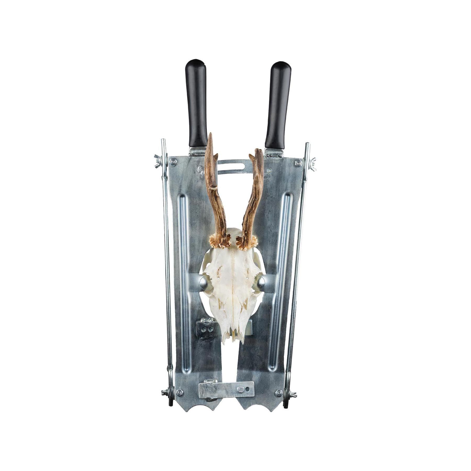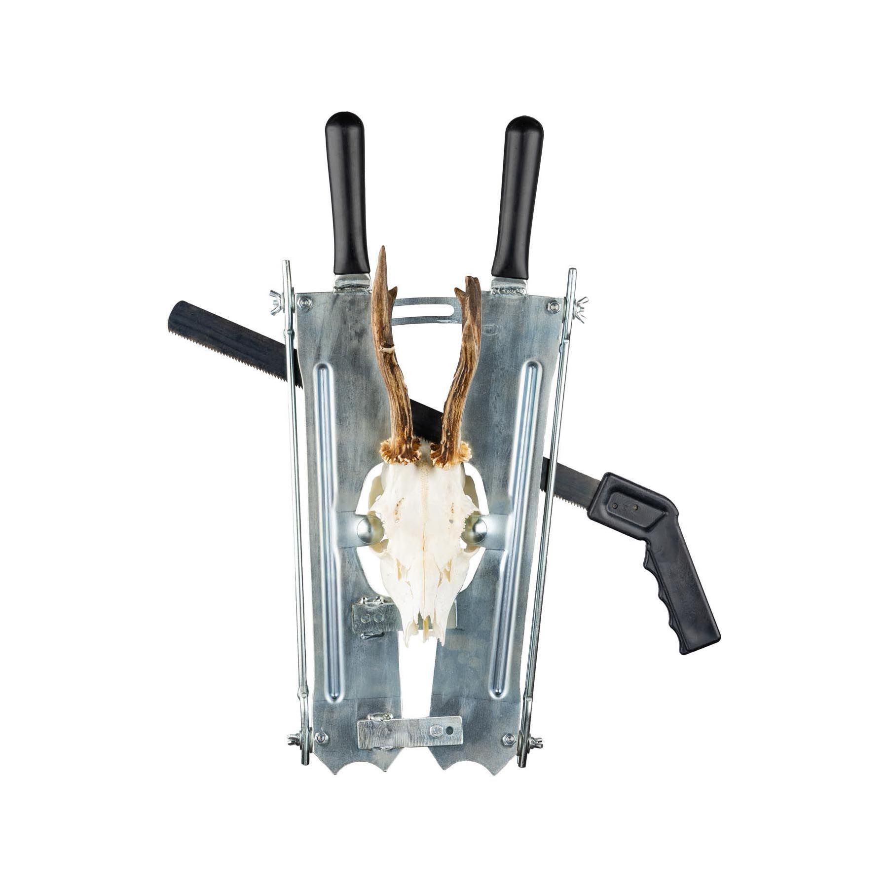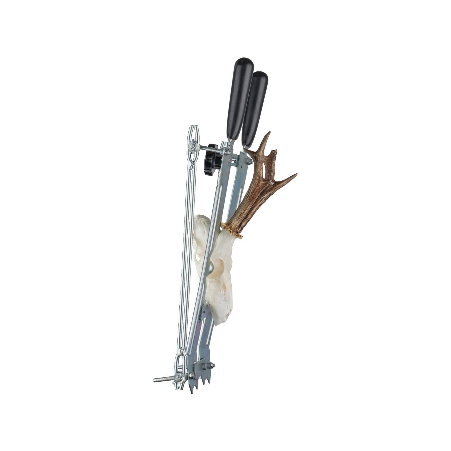 Az Eurohunt vertikális utóda nélkülözhetetlen eszköz minden vadász számára, aki önállóan akarja kidolgozni a trófeáját. Nagy minőségű horganyzott acélból készül, ami rendkívül robusztus és tartós. Az eszköz egy változó kezelő sínvel és egy fűrésztel rendelkezik, amelyek megakadályozzák az elakadást és az elakadást, és lehetővé teszik a sima, egyenletes és pontos vágást. A vágás annyira pontos, hogy nem kell átdolgozni.