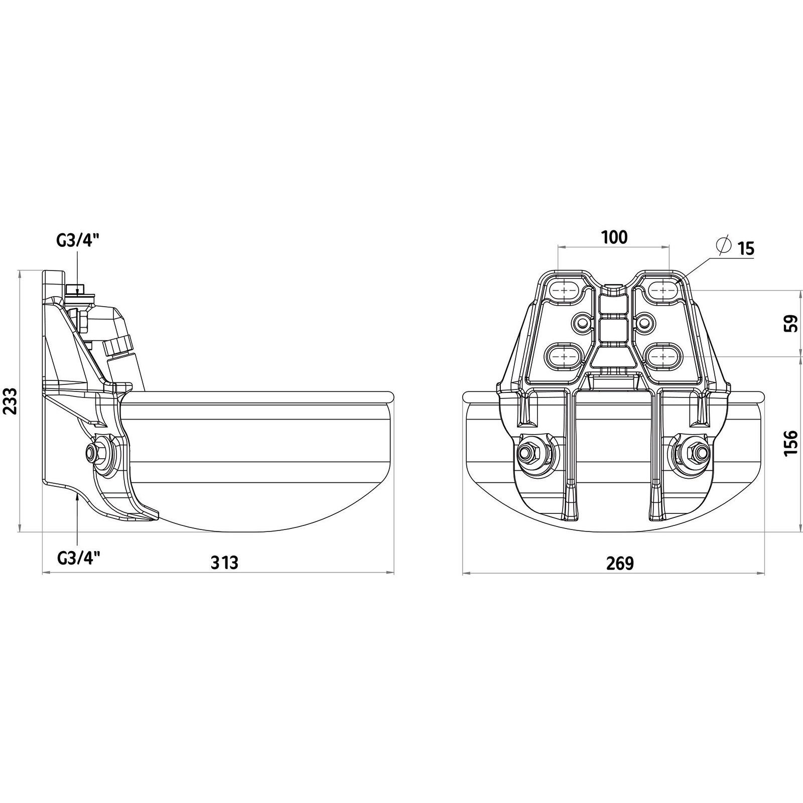 A 4 pontos rögzítéssel a tehén- és lóitatótál falra vagy csőre rögzíthető (a rögzítőanyag nem tartozék). A vízcsatlakozás a 3/4"-os csatlakozóval alulról és felülről is lehetséges.