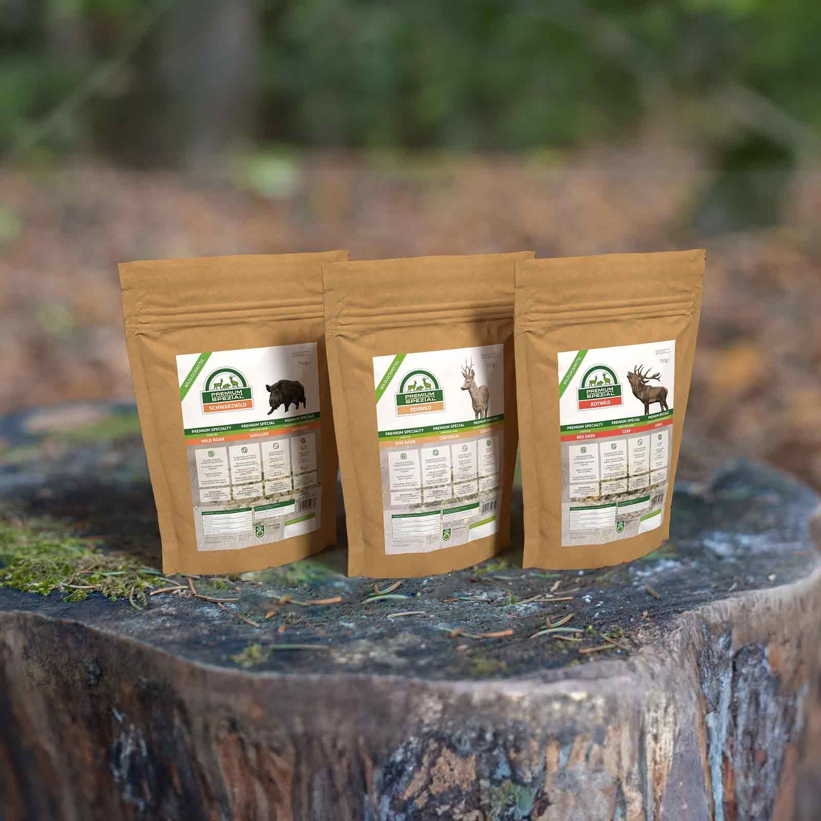 A Wildlock ügynök speciálisan kiválasztott és tesztelt összetevőkből áll, és elérhető a Roe Deer, a Red Deer és a Wild Boar verziójában. 750 g súlyával elegendő több hely felkészítéséhez és a játék hosszabb ideig vonzása.