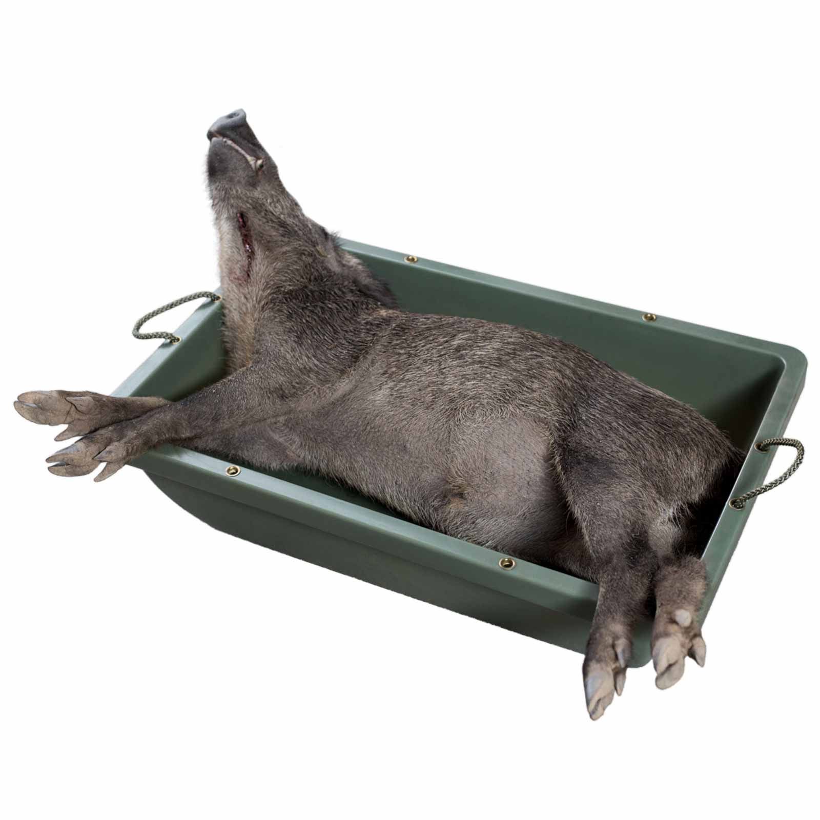 Az újonnan kifejlesztett Eurohunt univerzális és vadkád szán alakú hibával és integrált futóval rendelkezik, hogy könnyebben húzza a kádot a padlón. A sima felületnek köszönhetően a kád könnyen tisztítható. Négy szemlélettel van felszerelve kábelekhez, elpusztíthatatlan PE-anyagból készül, amely sokk és törésálló, és ellenáll a +70 ° C /- 70 ° C hőmérsékletnek
