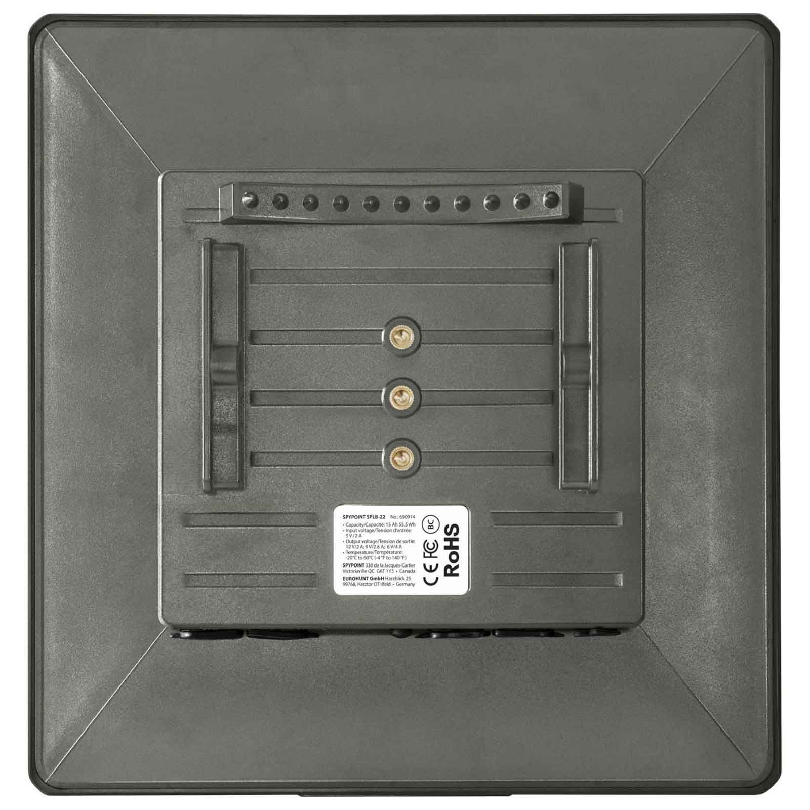 A napelemes panelen az a különleges dolog, hogy folyamatosan tölti az integrált 15 000 mAh lítium akkumulátort . Ez azt jelenti, hogy a fényképezőgép hónapokig futhat anélkül, hogy aggódnia kellene az akkumulátor megváltozása miatt. Négy különböző kimeneti kábellel is van felszerelve, így könnyen csatlakoztathatja a fényképezőgépet a Spypoint Solar Power Bank SPLB-22-hez, függetlenül a kameragyártótól.