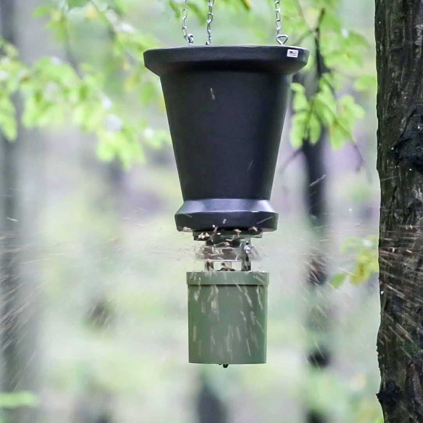 A Kirrautomat különösen alkalmas azok számára, akik optimalizálni és automatizálni akarják a vad táplálkozási folyamatot . A kapugazdálkodáshoz megfelelő azonban, vegye figyelembe a vadászatról szóló törvényeket! Időjárásálló minősége miatt ideális a szabadtéri használathoz.