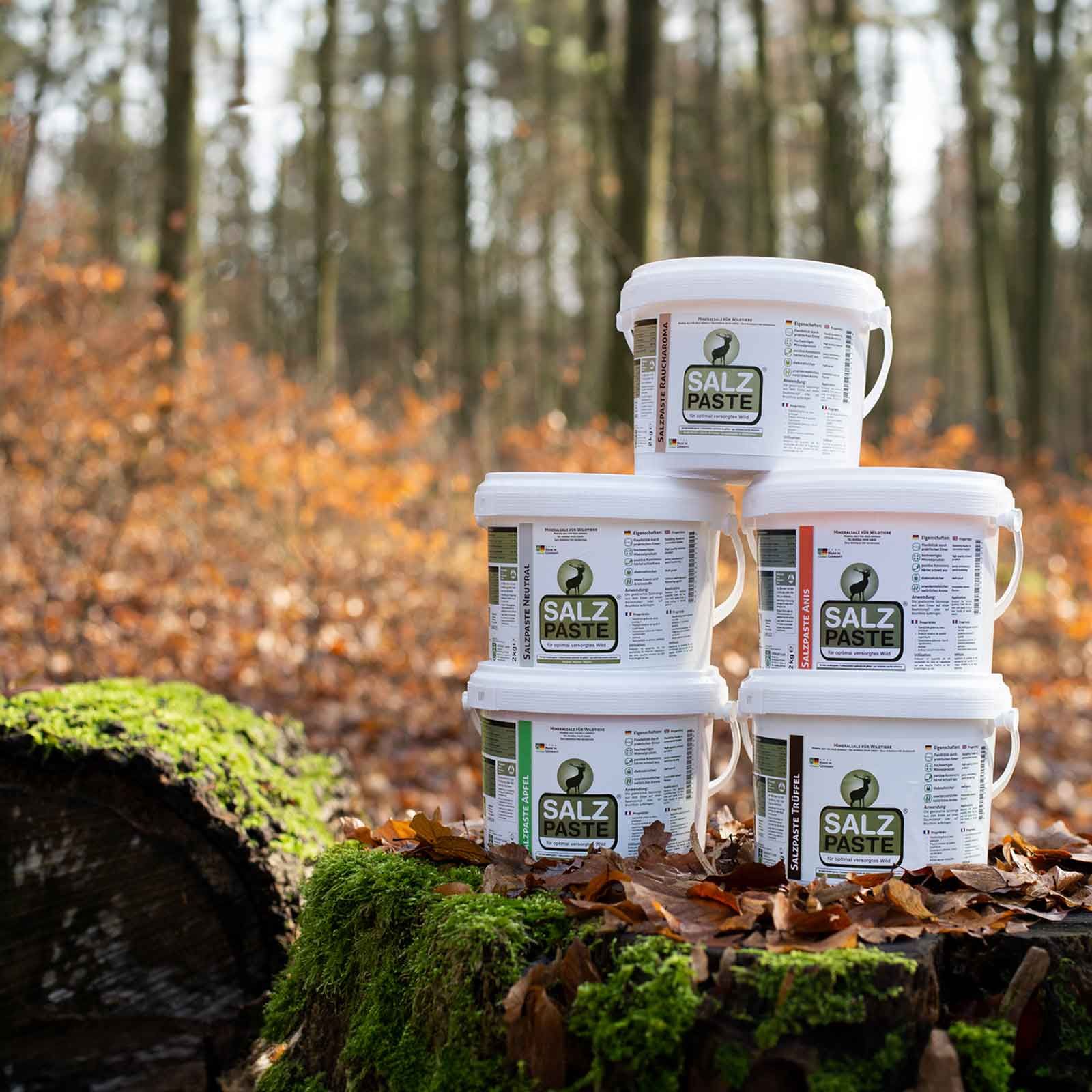 A praktikus 2 kg vödör lehetővé teszi a sóspaszta számára, hogy a sópaszta kényelmesen legyen a terület alatt, és szükség esetén töltse fel. Különleges előnye: A vadon élő sóspaszta nem lopható !