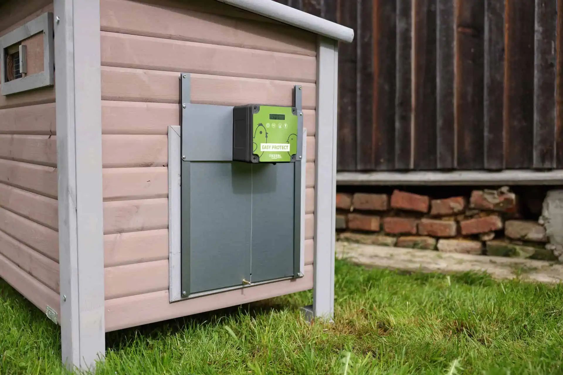 Az EasyProtect automata csirkeajtóval automatikusan kinyithatja és bezárhatja a baromfi istálló csirkeajtóját.