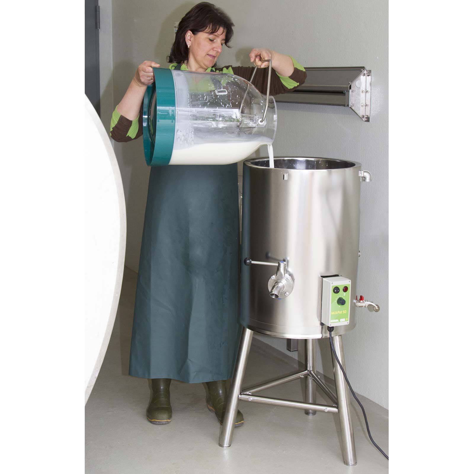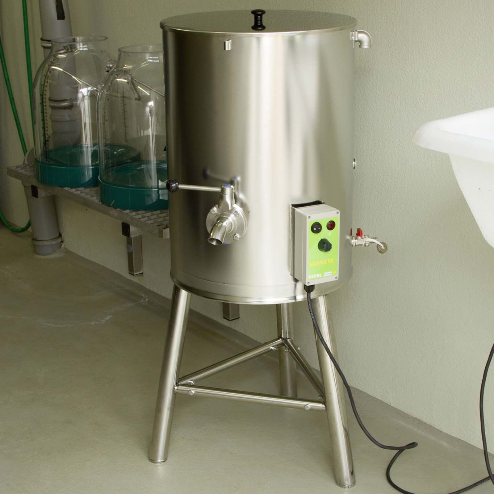A Kerbl MilkPot 50 tejmelegítő ideális segítség a borjúneveléshez, különösen a közepes méretű gazdaságok számára. A tejmelegítő a merülő melegítők és az összetett berendezéssel rendelkező mobil tejtartályok közötti rést zárja le. Akár 50 liter tej vagy tejpótló keverék is gyorsan és sok munka nélkül felmelegíthető . A tejet kíméletesen és égetés nélkül, vízfürdőn melegítjük.