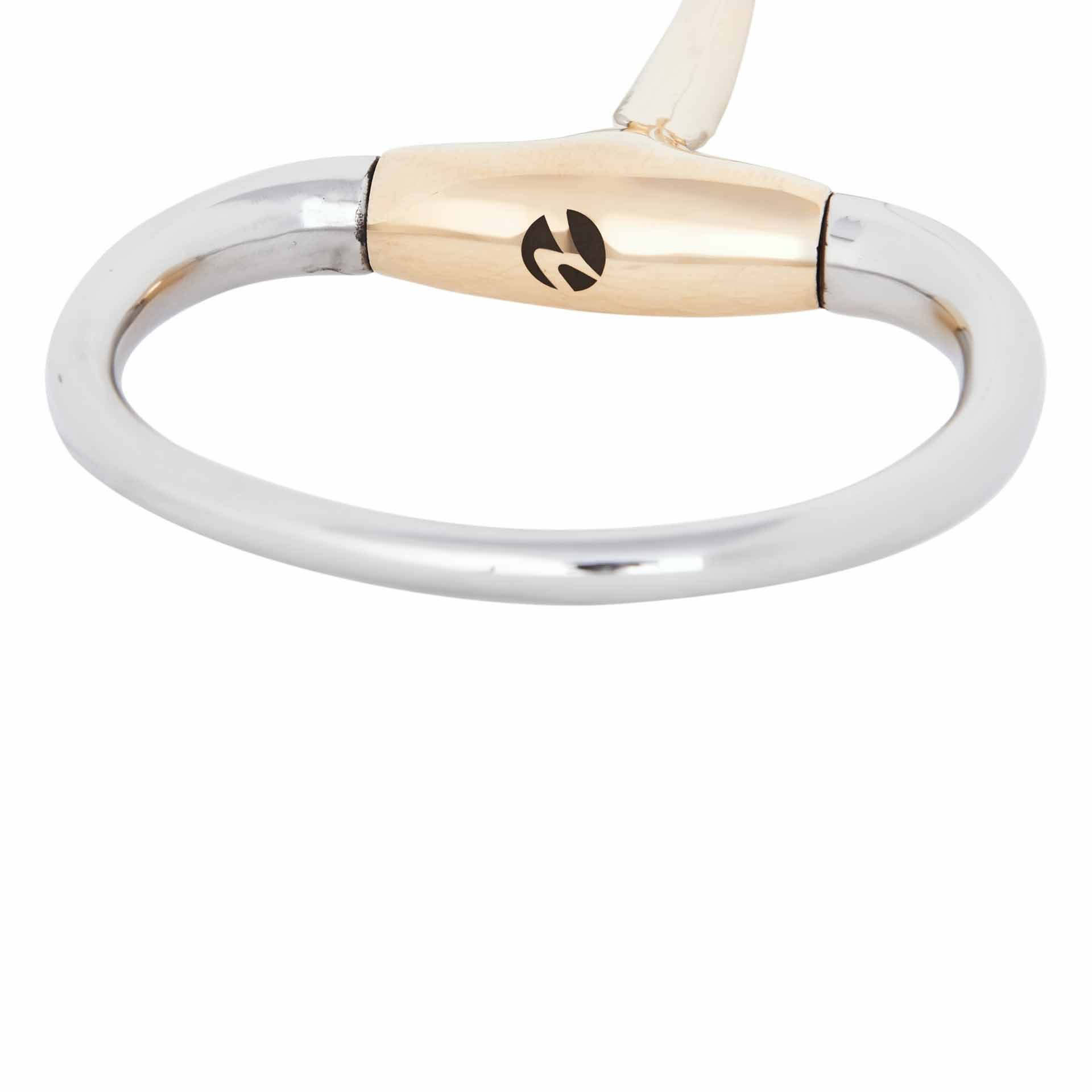 A buszok olívafej harapása Kaugan® 18 mm, kétszer törött egy nagy minőségű fogak, amelyek stabil és csendes helyzetet biztosítanak a ló szájában. A kettős törött alakja és az ellipe -alakú középpontja miatt a versenyző és a ló közötti hatékony kommunikáció garantált.