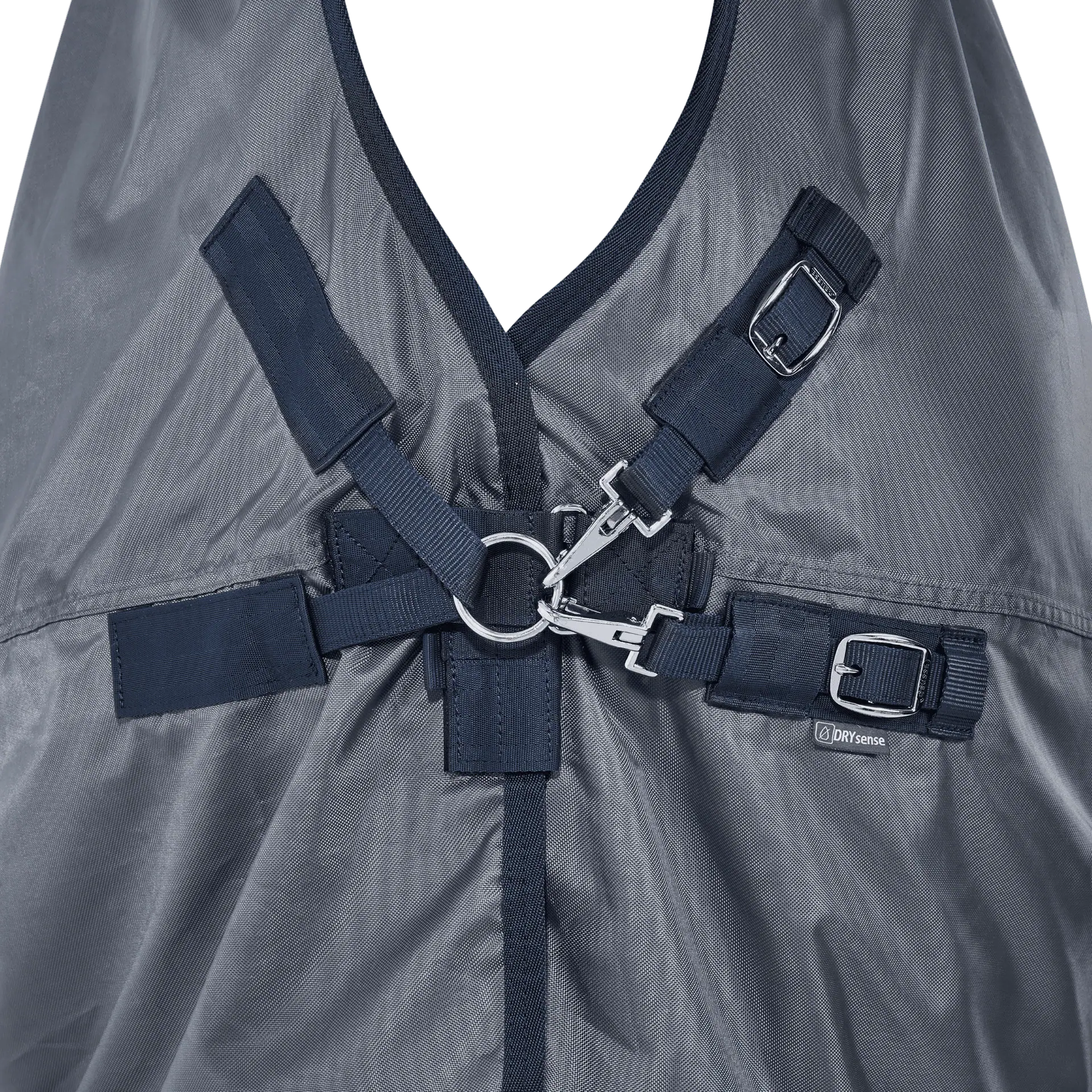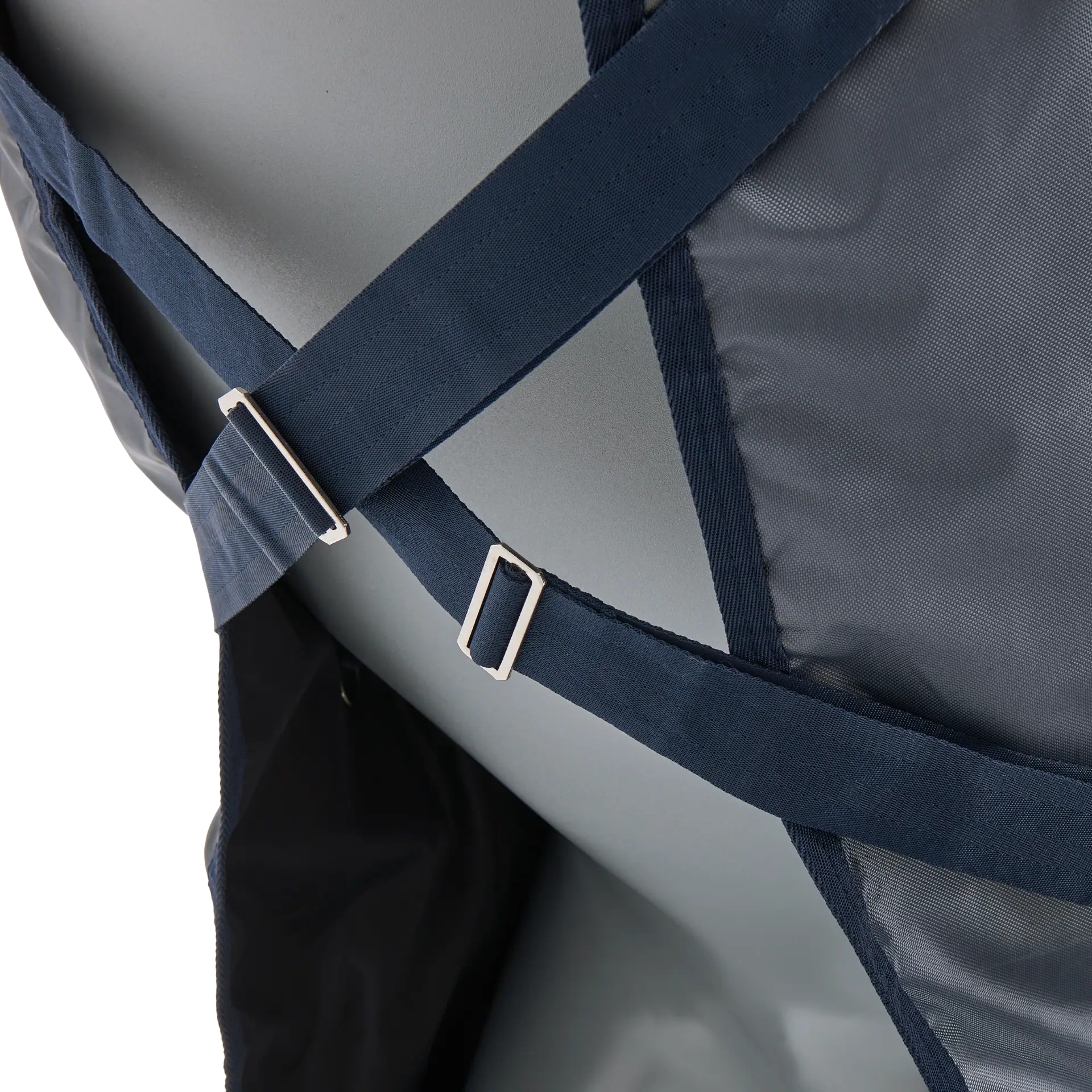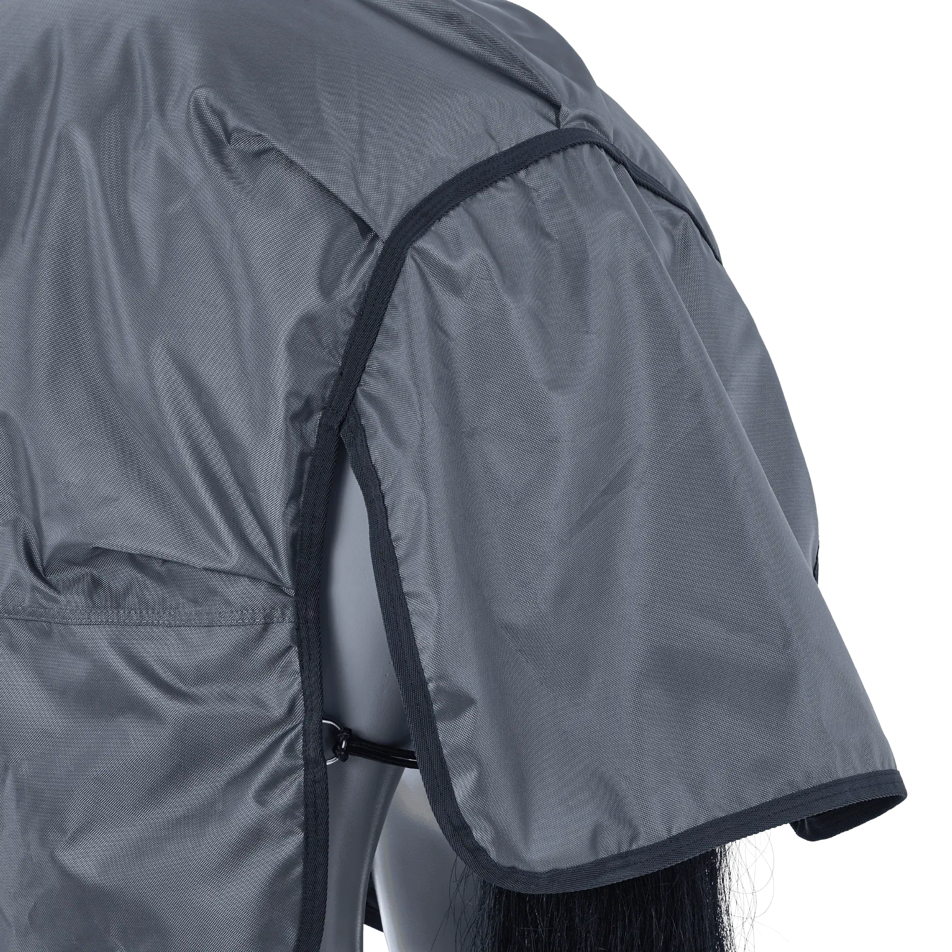 Az eső-levezetés jól átgondolt illeszkedése és felszerelése biztosítja az optimális kényelmet és az egyszerű kezelést. A magas vágású passzus alak, egy extra hosszú előrehaladással, messze túlmutat a Withers-en. A V-Quick-SNAP mell bezárása integrált dupla-off és cserélhető karabinerekkel lehetővé teszi az egyszerű rögzítést és a beállítást. További jellemzők a hosszúság -állítható kereszteződés, az integrált elasztikus hurokkal és az integrált, tágas farokfedéllel beállítva.