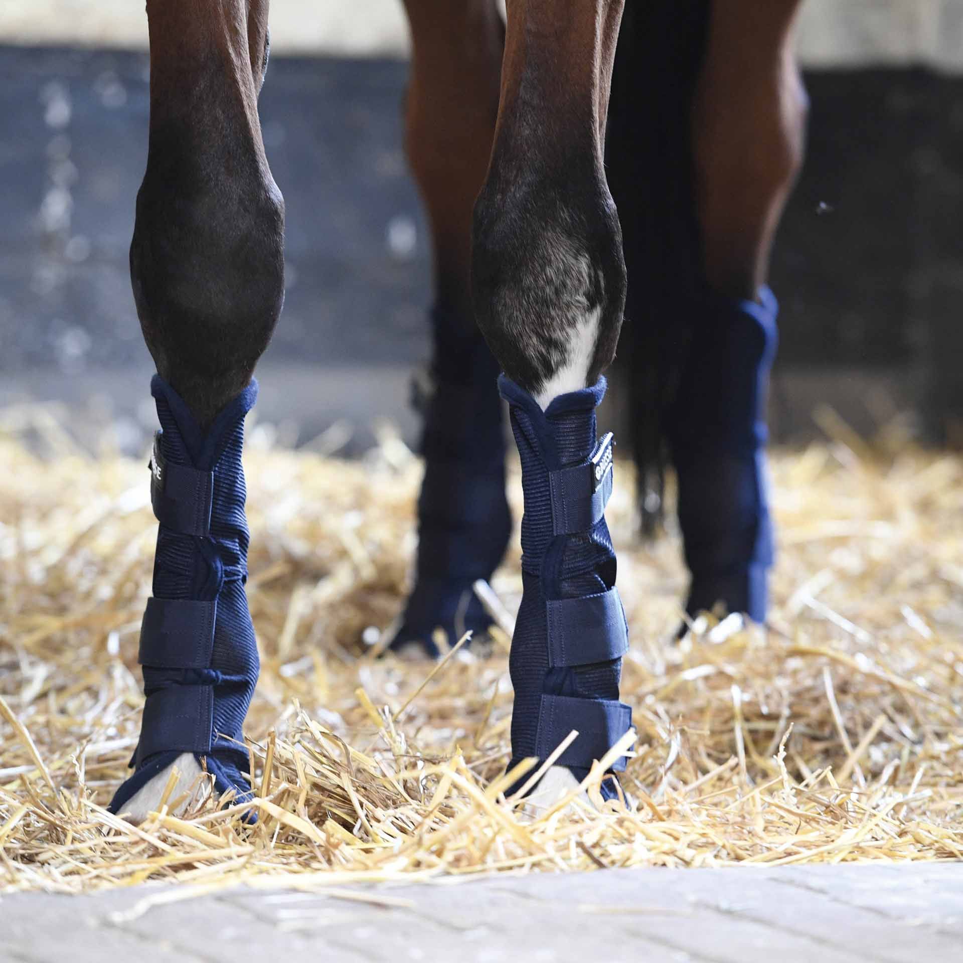 Ezek a járók egy levegő -átható, robusztus hálózati anyagból állnak, és anatómiai illeszkedést kínálnak. Laza és rugalmasak, így optimálisan adaptálhatók az egyes ló lábához. A szintetikus gumiból készült párnázással történő rugalmas tartó a hátulján megőrzi a Gaiter alakját és helyzetét.