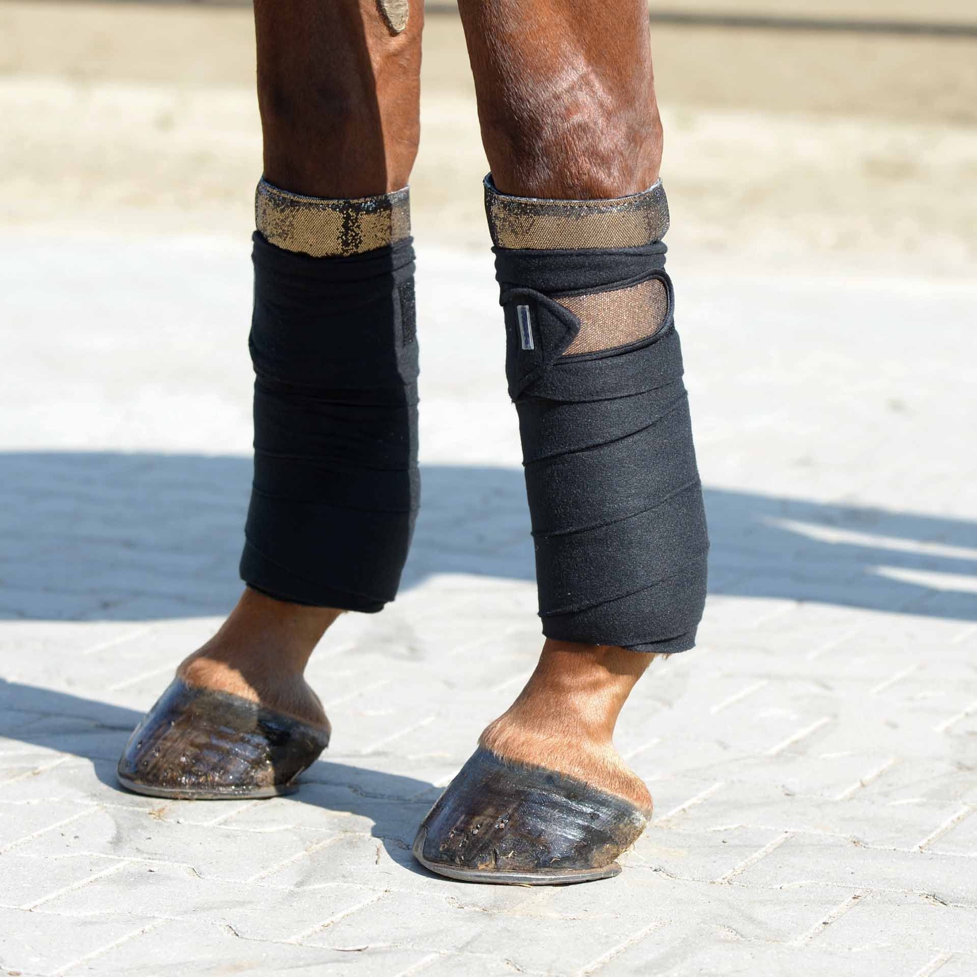 A Busse Bandagen Classic Glitter számos előnyt kínál. Puha, nem szellőző gyapjúból készülnek, és egy tépőzáras rögzítőelemmel rendelkezik, amely csillogó díszítéssel rendelkezik, amely biztosítja a biztonságos ülést és vonzó megjelenést. 40 ° C -ig mosható gép, és egy gyakorlati 4 -es készletben van, egy cipzárral ellátott hordtáskába csomagolva.