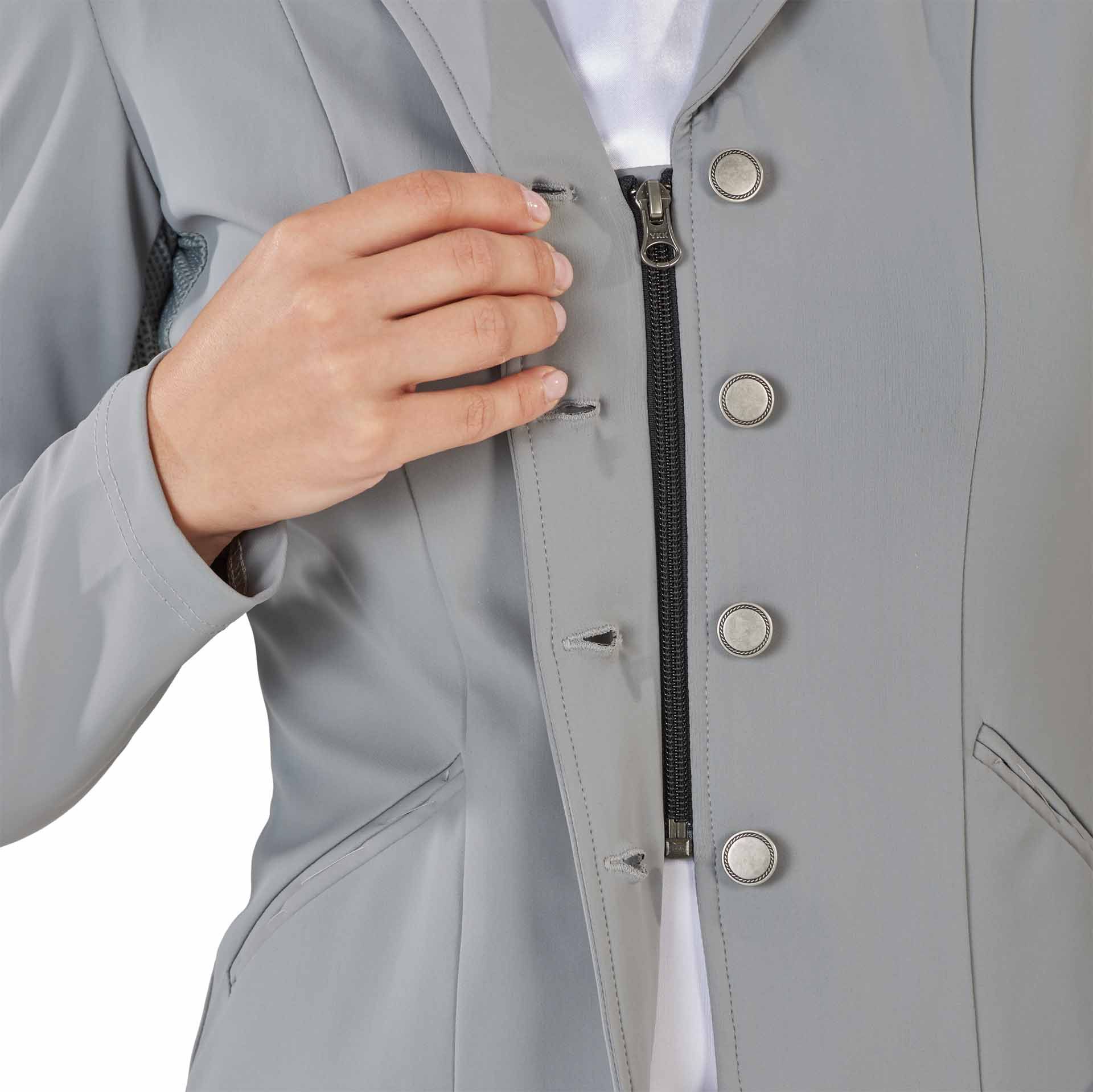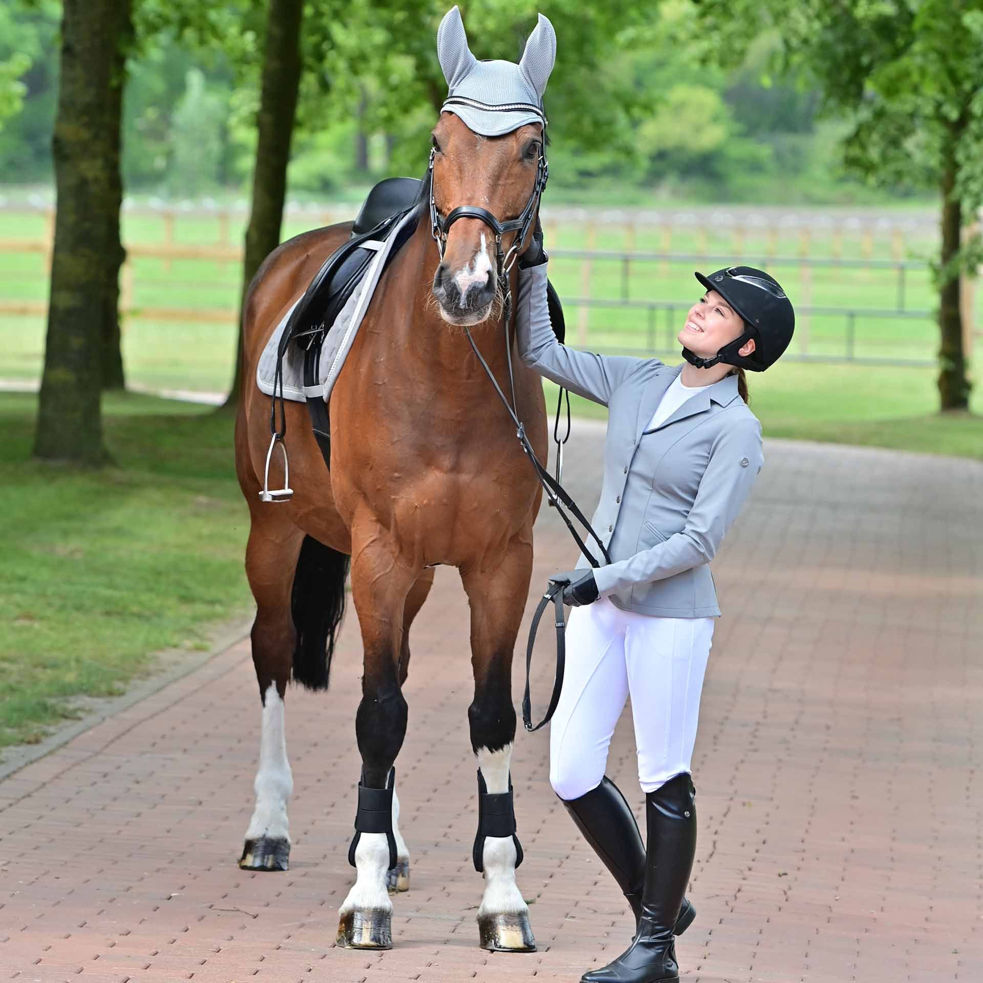 A Busse verseny kabátja Florence egy szuper könnyű, sportos egyszerű versenydzseki, modern funkcionális anyagból, háló betétekkel. Egyesíti a klasszikus megjelenést a sportos előadással, ideális a lovas sportok igényléséhez.