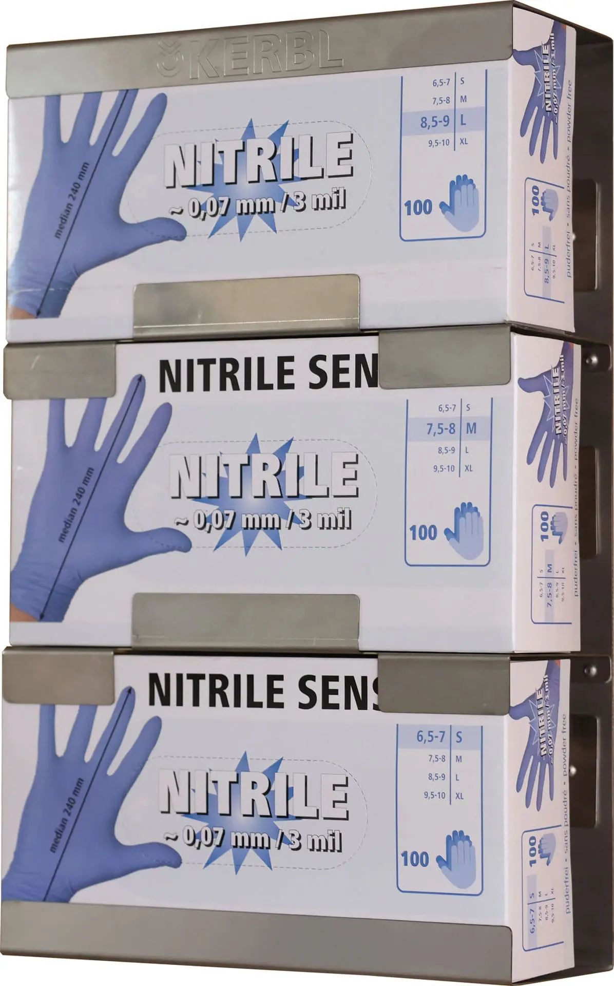 nagy minőségű, csiszolt rozsdamentes acélból készül, ez a konzol nemcsak vizuálisan vonzó, hanem rendkívül robusztus és tartós is. Könnyű gondoskodni, higiénikus és könnyen fertőtleníthető, és rozsdamentes marad -még nedves vagy maró körülmények között is. A rugalmas tartási rugó lehetővé teszi egy szilárd, csúszásmentes tartást az összes közös donordobozban. A jobb oldalon lévő nyitott felépítés miatt speciális méretű, például hosszú kesztyűre is alkalmas.