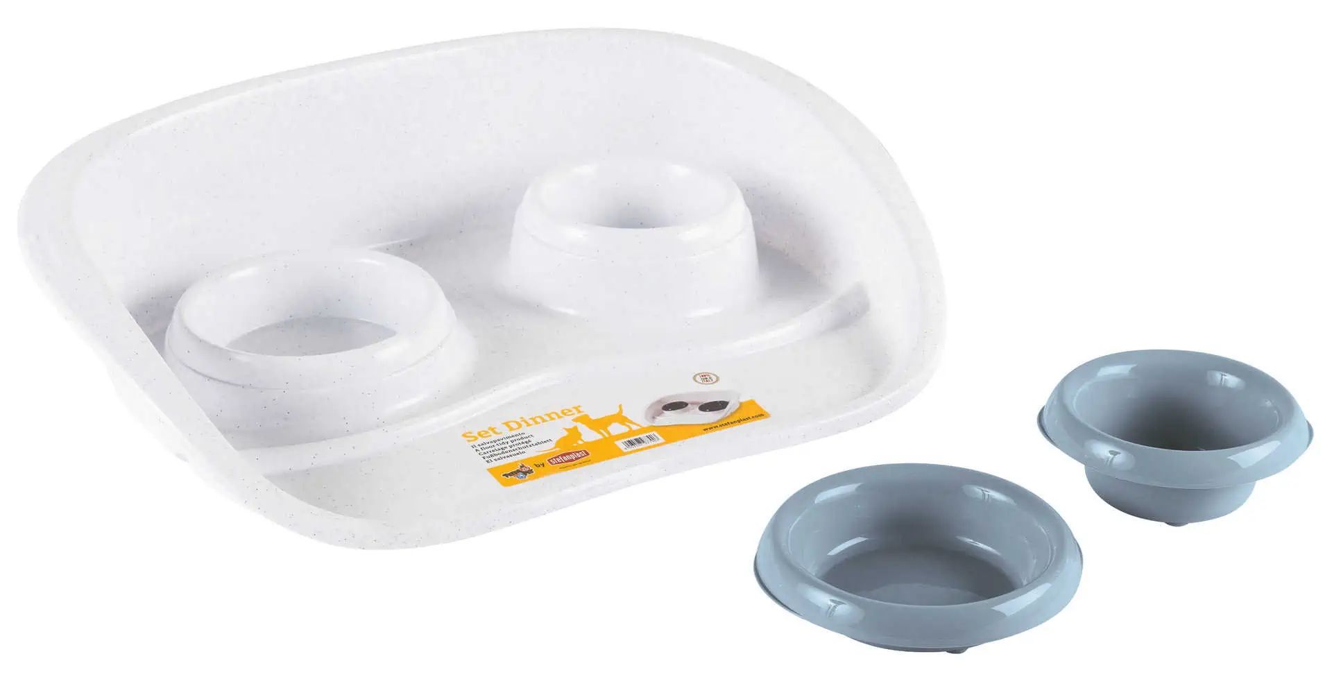 Etetőrúd 2 tálkával, kék, 46 x 35 x 11 cm