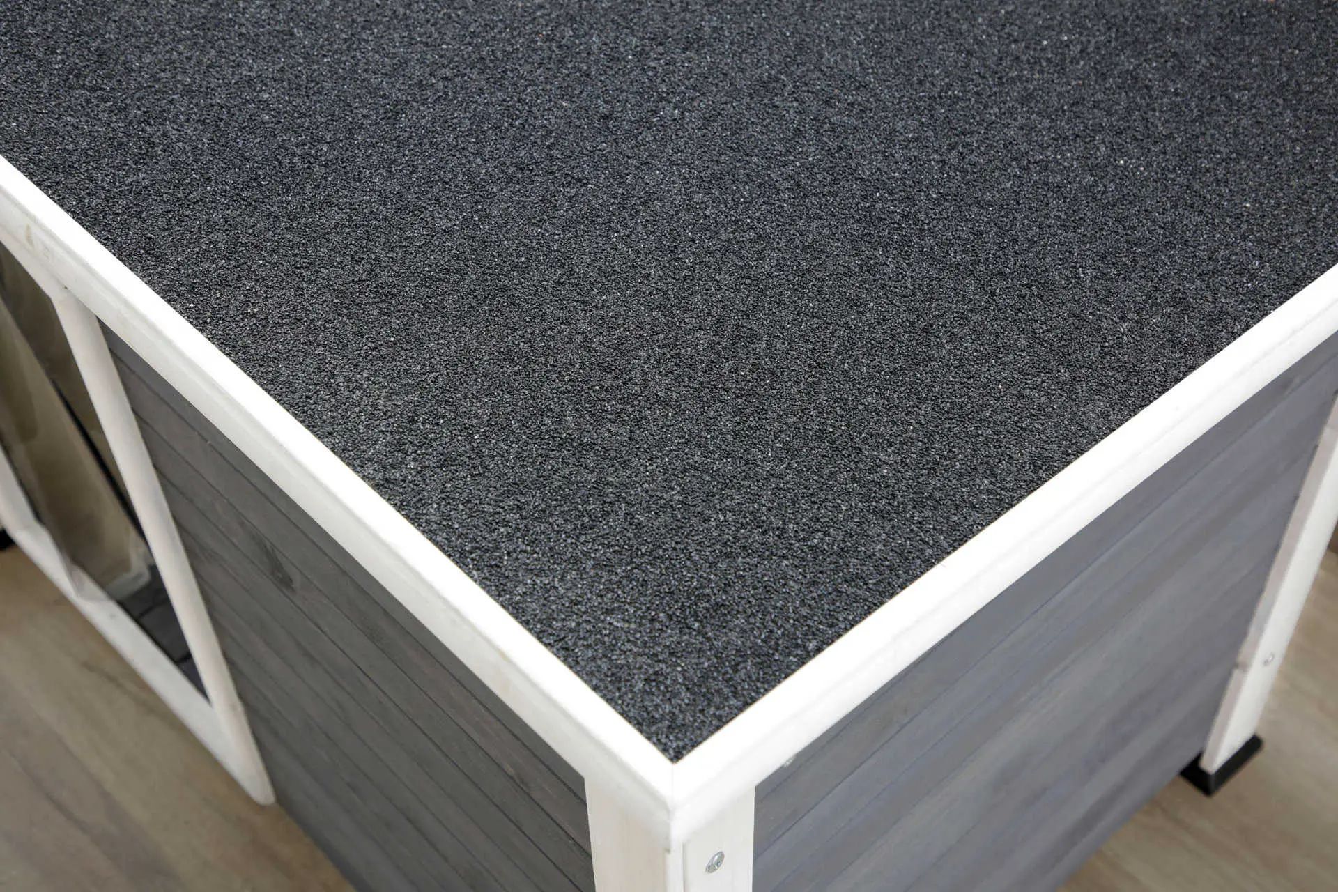A Kenny House egy stílusos és funkcionális kunyhó, amely a kutyának hangulatos és időjárásálló menedéket kínál. A bitum tető időjárásálló, és megvédi a kutyáját az elemektől, hogy bármilyen időben biztonságos és száraz legyen.