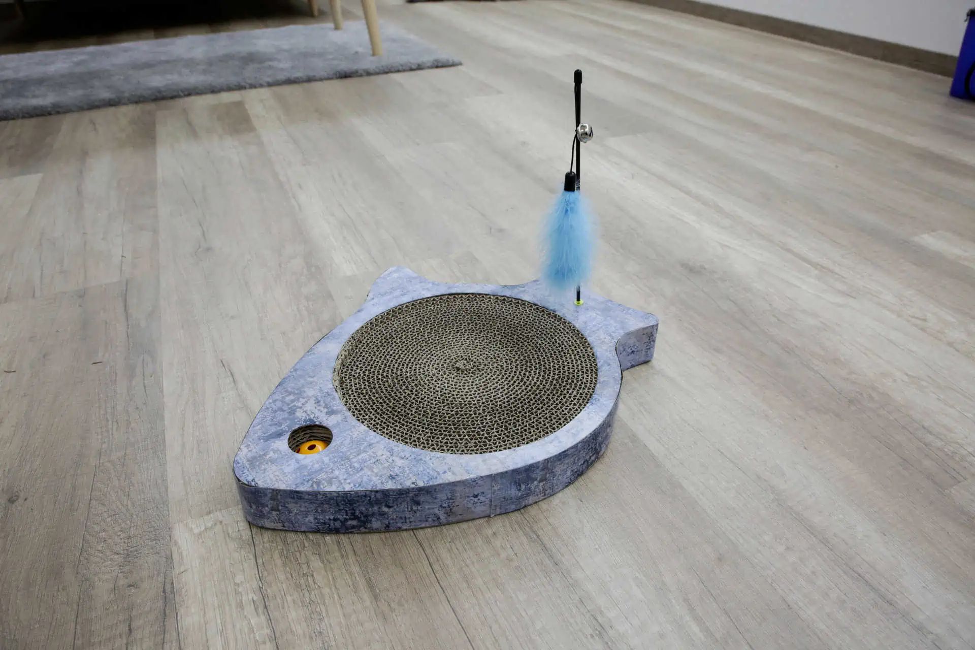 A műanyag játéklabdájával csengővel és tollkarral, ez a karcolólap arra ösztönzi a macskáját, hogy játsszon és karcoljon. Ezenkívül egy különálló macskás táska van benne, amelynek illata stimulálja a macskát és biztosítja a szórakozást.
