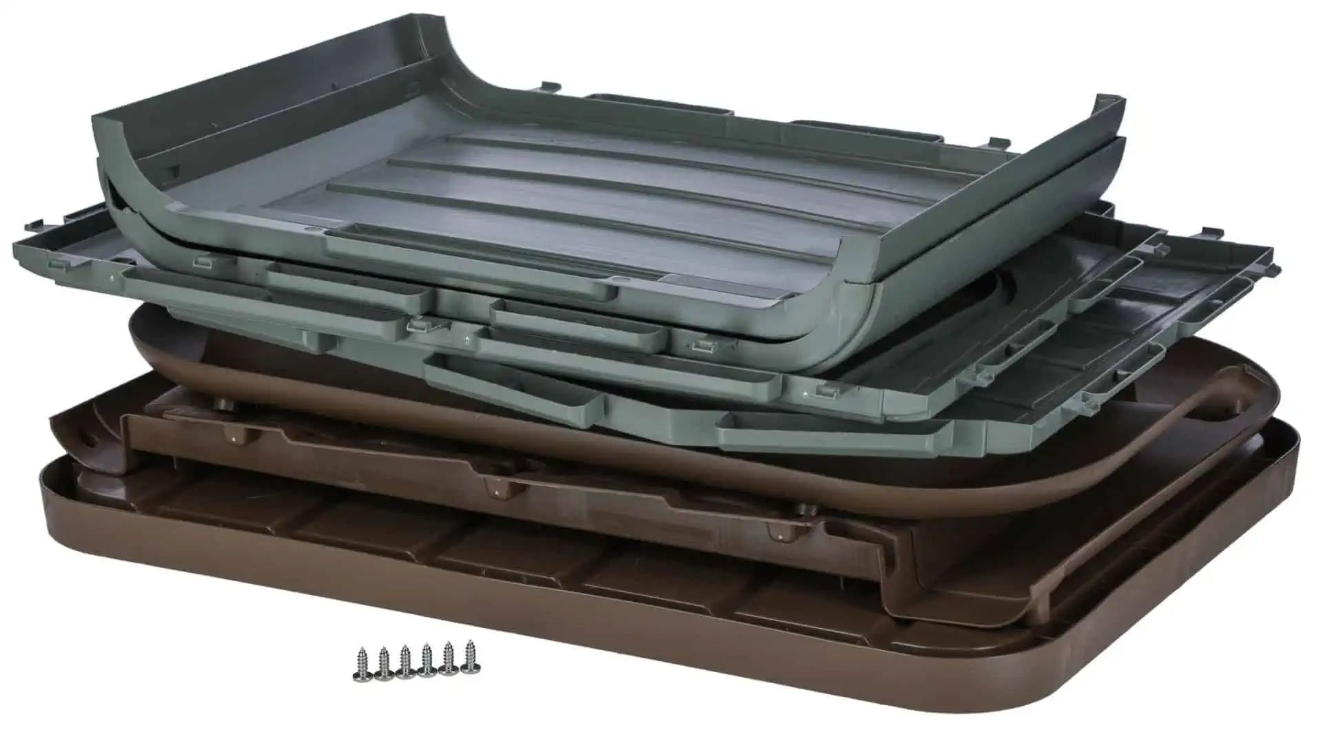 100% -ban a fogyasztó utáni újrahasznosított műanyagból készült, ez a macskaház nemcsak környezetbarát, hanem tartós és robusztus is. UV és időjárásálló, ami tökéletessé teszi a kültéri területet. Az egyes alkatrészek sima felületei megkönnyítik a tisztítást, és biztosítják a higiéniát és a tisztaságot.
