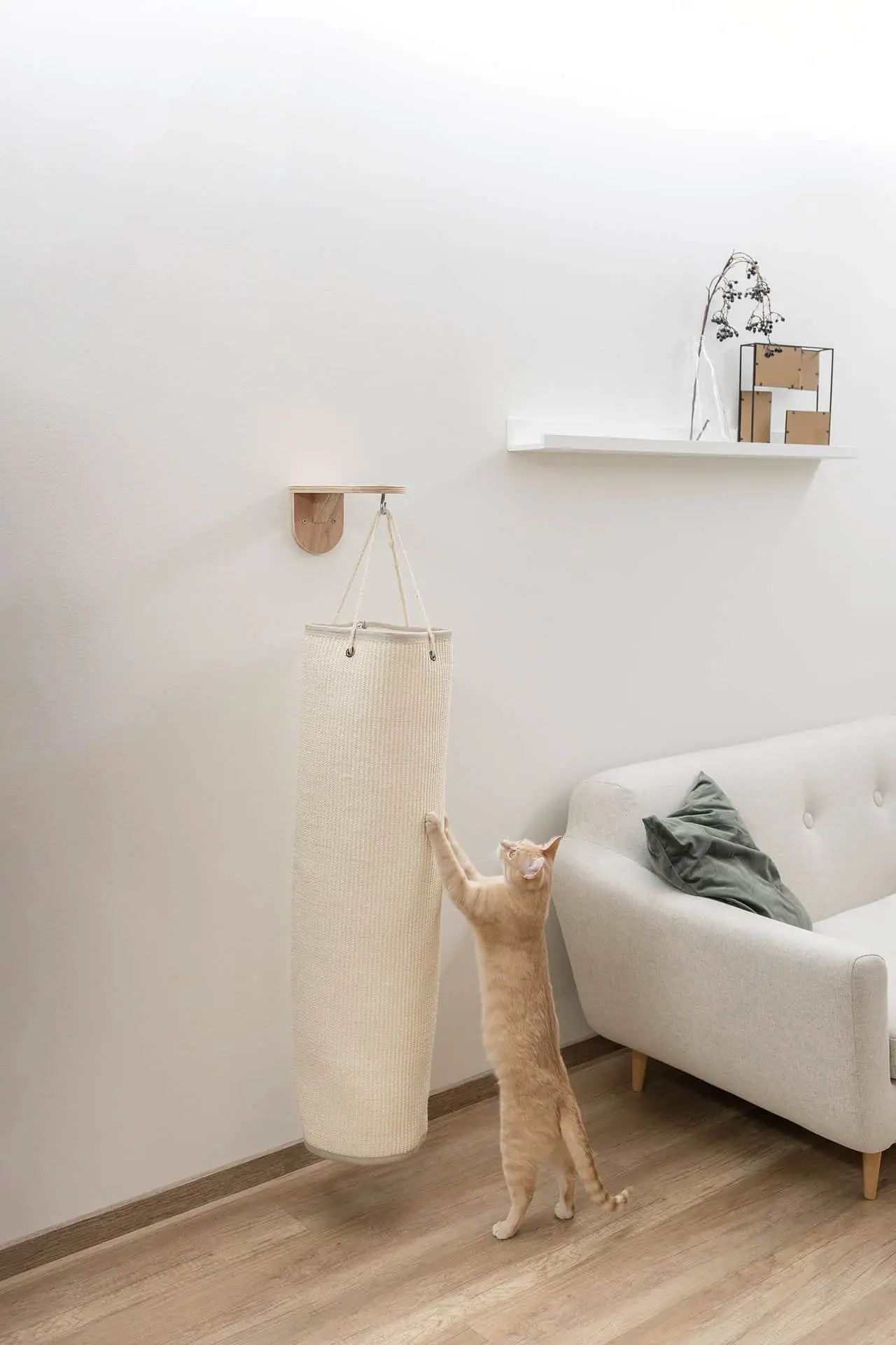 A hegymászózsák -hegymászó mini a falhoz van rögzítve, és lehetőséget kínál a macskának a játékra és a karom ellátására. Ez egy kiváló minőségű szizális szőnyegből áll, párnázott párnával, és könnyen fel-le lóghat.