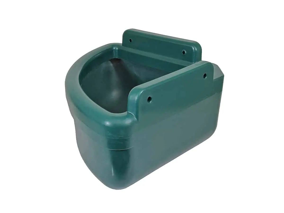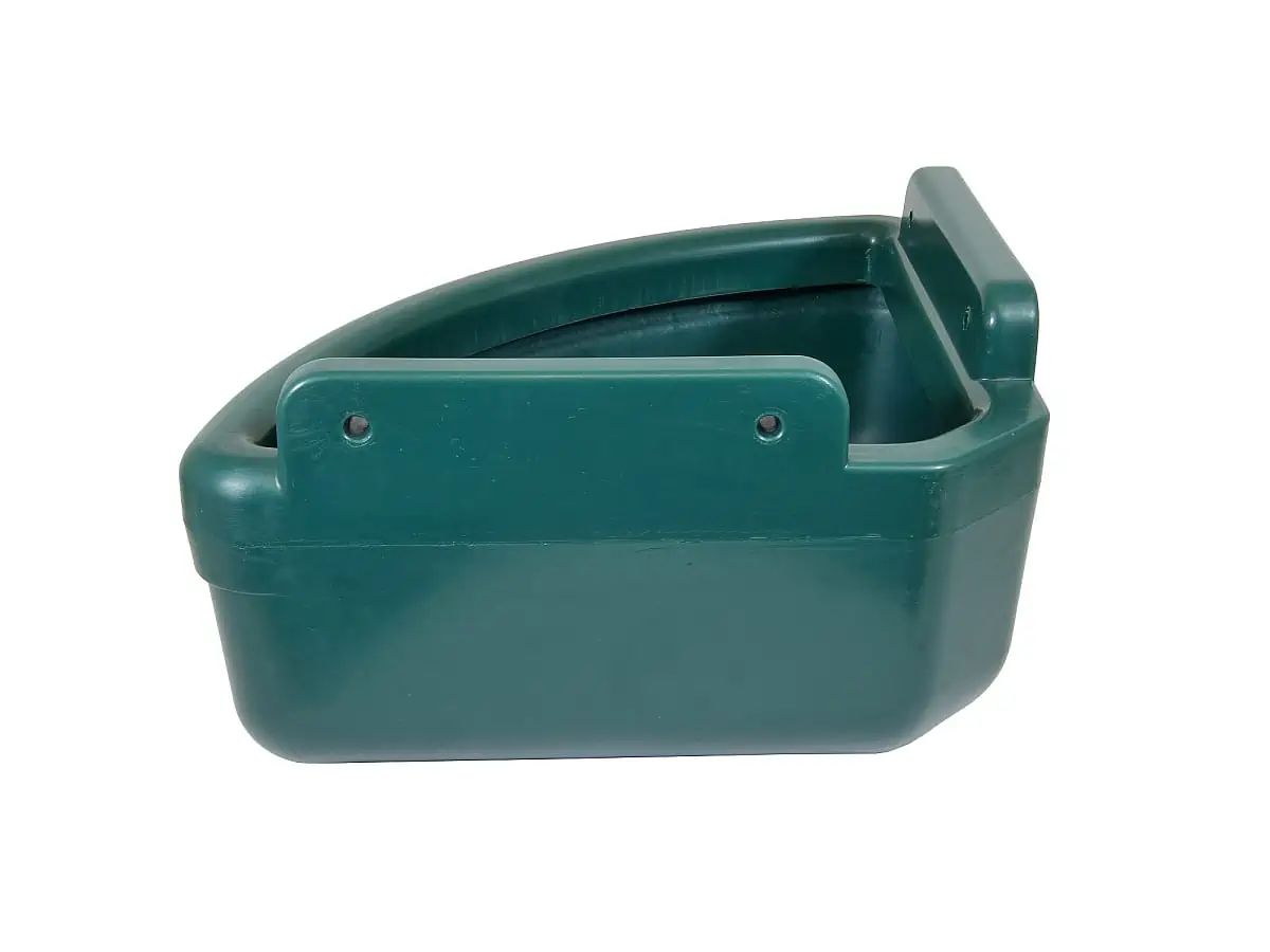 Ez a különösen robusztus műanyagból készült istálló etetővályú lovak és szarvasmarhák számára egyaránt alkalmas. Takarmánytakarékos éllel és kimeneti dugóval rendelkezik, ami megkönnyíti a tisztítást. A vályú szélessége 450 mm, mélysége 450 mm és magassága 290 mm. A vályú űrtartalma 22 liter, súlya 2,4 kg. Szín: zöld.