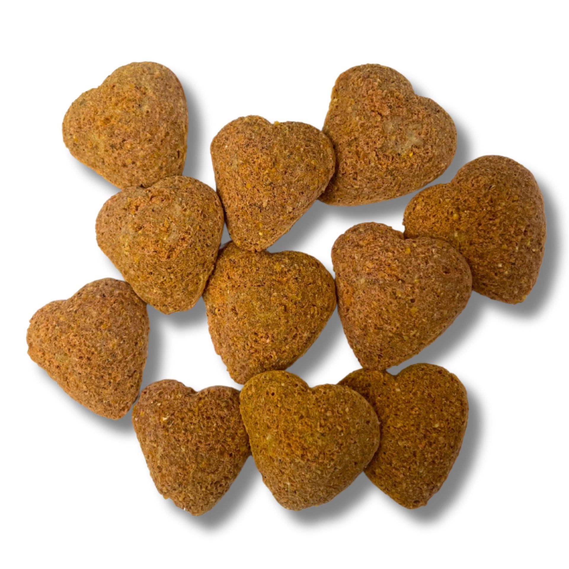 Emma's Carrot Heart Horse Treats are the perfect choice to provide your horse with a healthy and tasty reward. These heart-shaped treats are made from 100% natural ingredients, without any artificial colors or preservatives and flavor enhancers – making them 100% chemical-free. Produced in a small mill in Germany, these treats are known for their particularly intense flavor and enjoy an extremely high acceptance among horses.