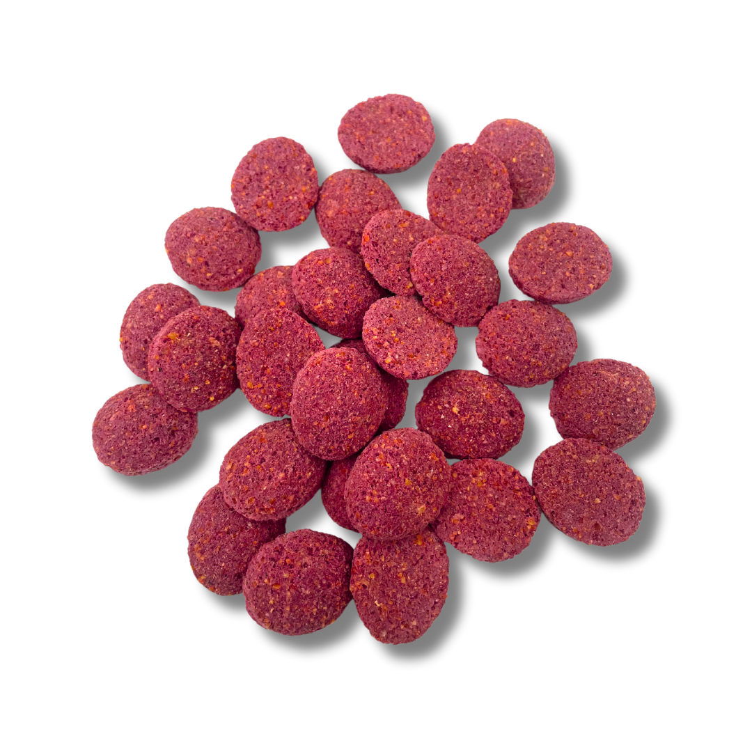 The Emma's Horse Treats Raspberry Chips are the perfect treat for your horse! These natural treats not only offer a healthy snack but also help strengthen the bond between you and your horse. Made in a small mill in Germany, they are composed of 100% natural ingredients, completely free from artificial colors and preservatives. You will be amazed by the extremely high acceptance and the intense flavor these treats offer.