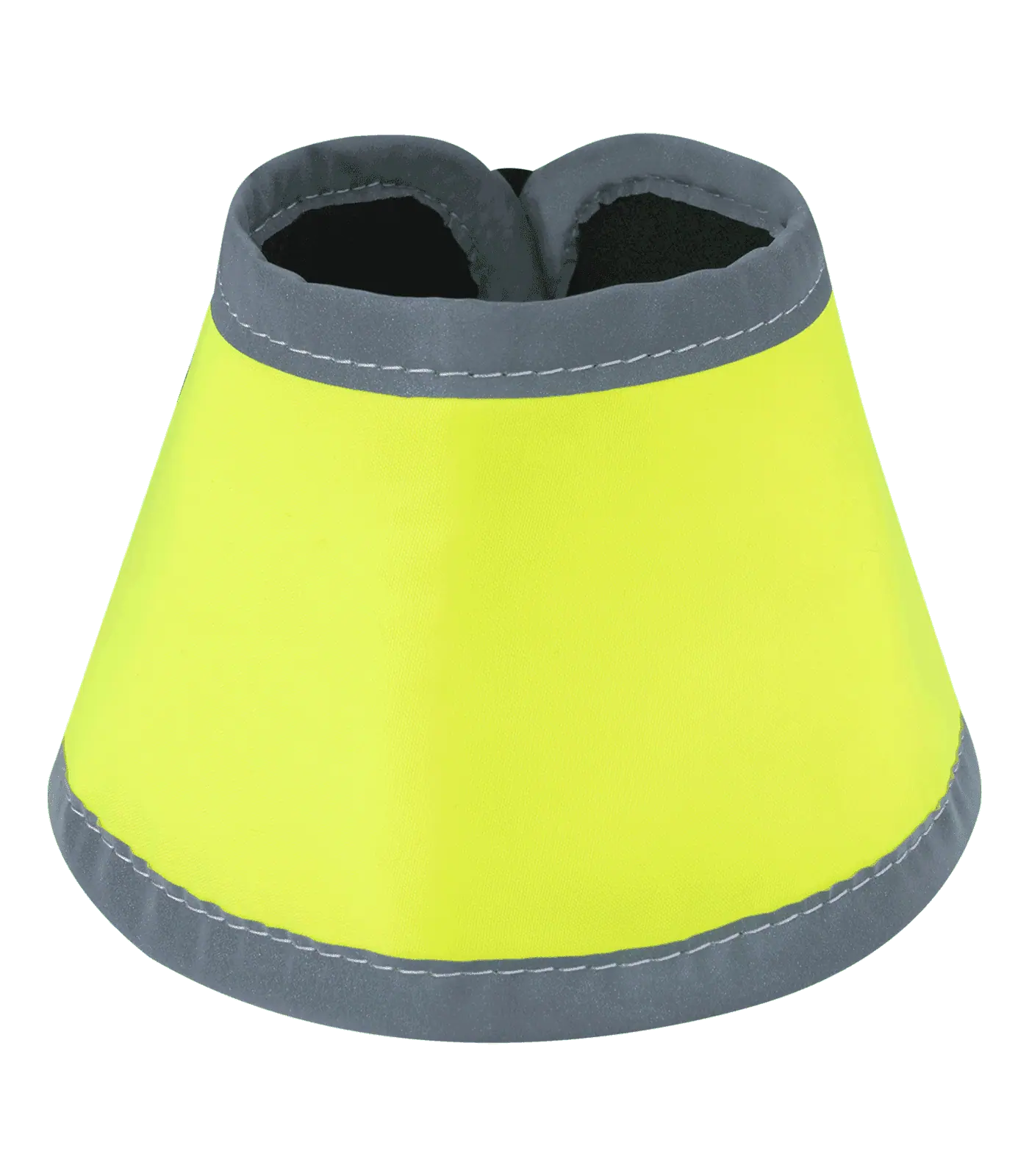 Bell boots made out of neon yellow outer material and soft fleece lining with reflective trim. Strong touch tape fasteners for secure hold. Pair