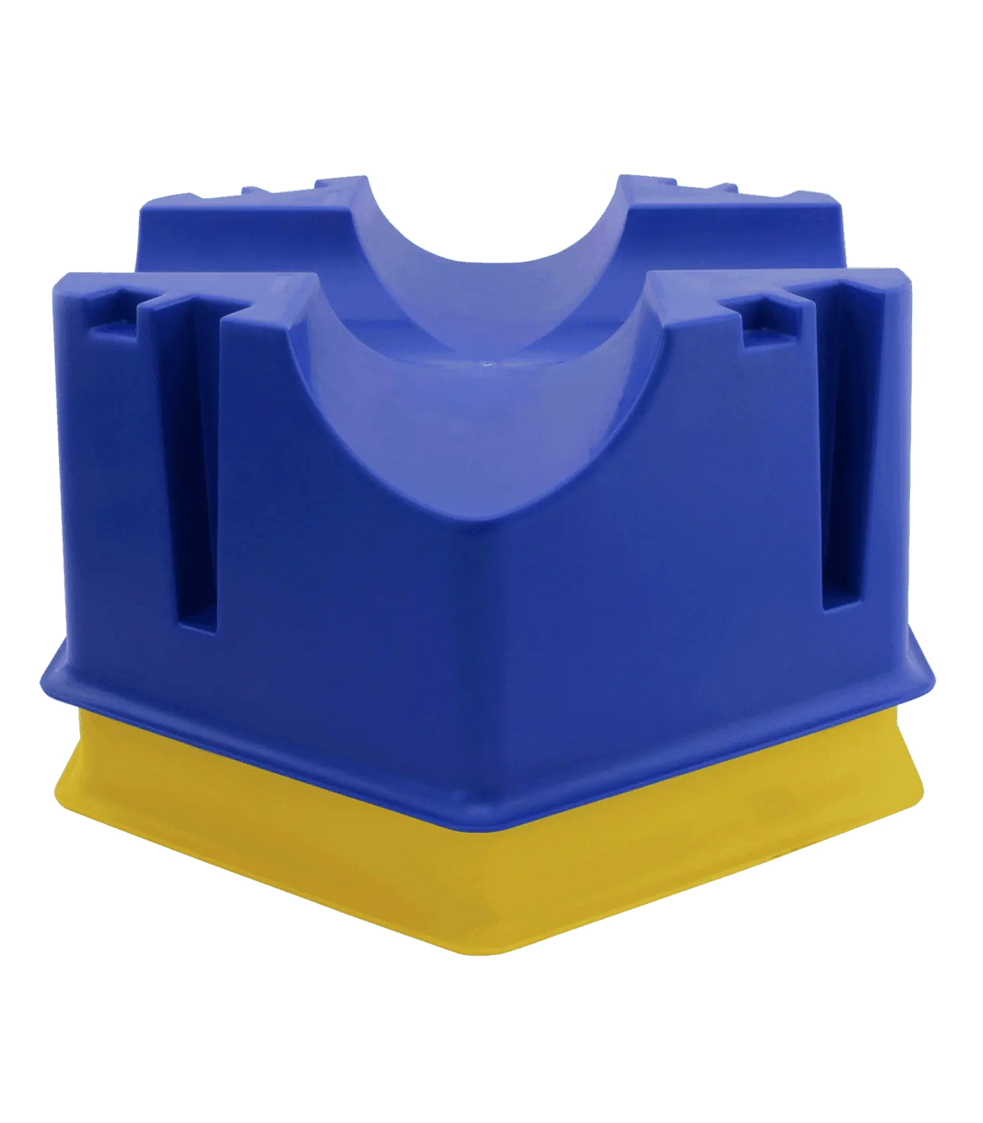 The jump block is a functional accessory for the jumping course, lunging and for ground work. For all standard poles. It can be used as a single block or stacked. With a simple 180° degrees turn of the second block you can raise the height from 15 cm to 25 cm. Space-savingly stackable.