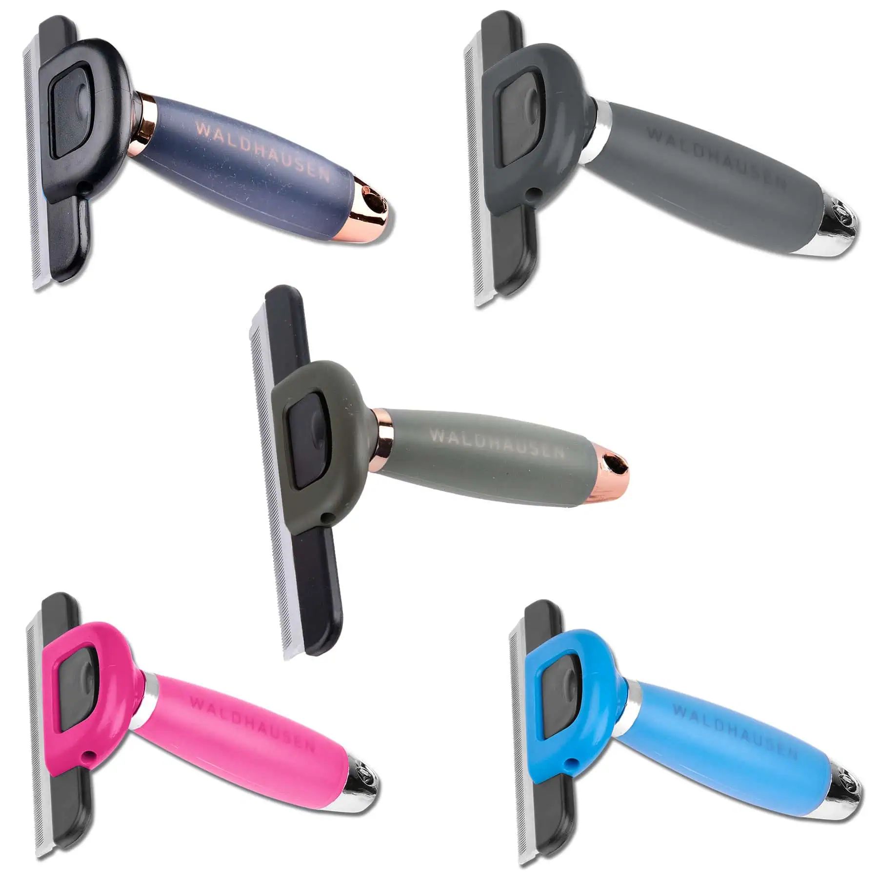 4 stainless steel rings allow for 2 grooming modes. Ideal to use during changing of coat or to brush out crusted parts. Ergonomic handling.