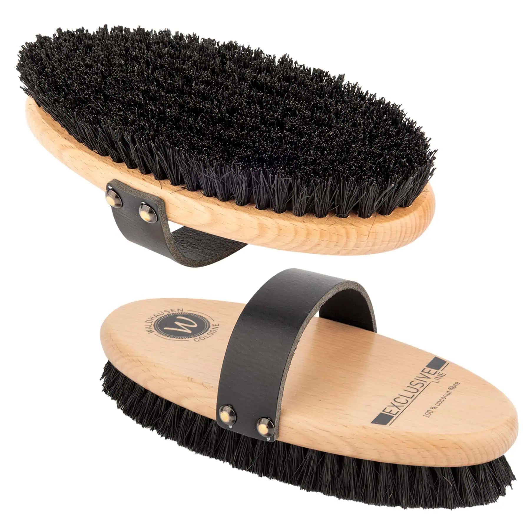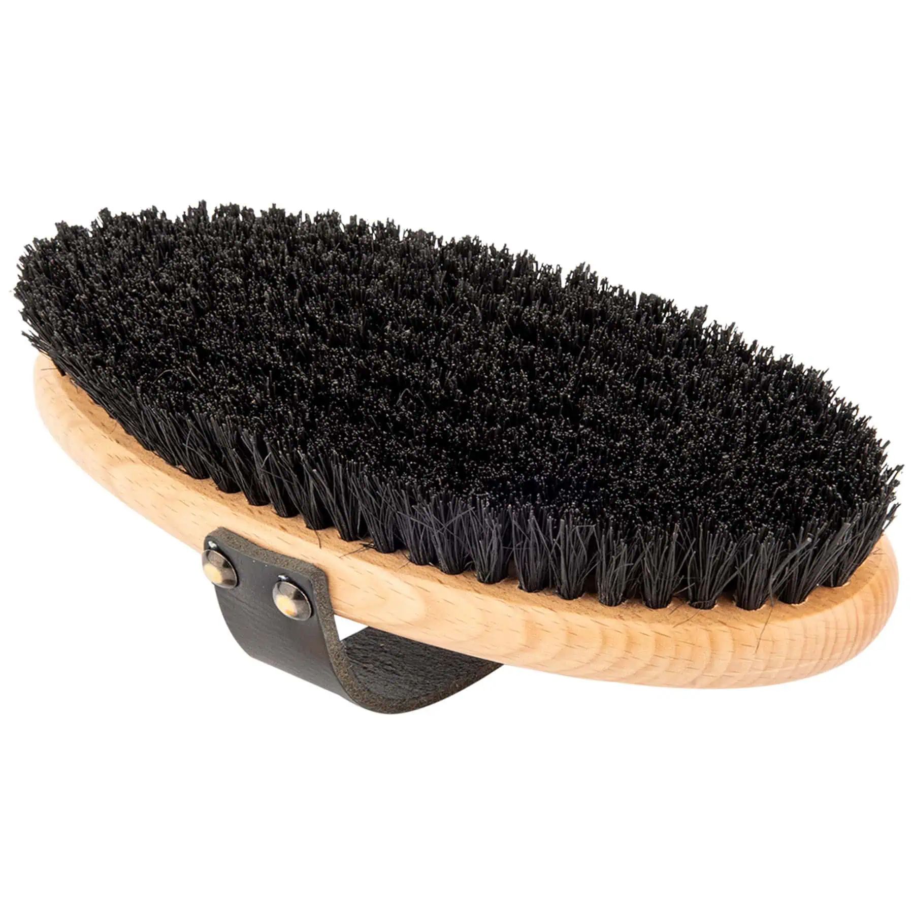This large horse body brush with a dense firm bristle field in 100% natural coconut fibres is particularly suited for cleaning grey horses and those with light coloured coats. The stiff coconut fibres reliably remove even the most stubborn deposits on white or light-coloured coats. Stable and grass stains don’t have a chance.