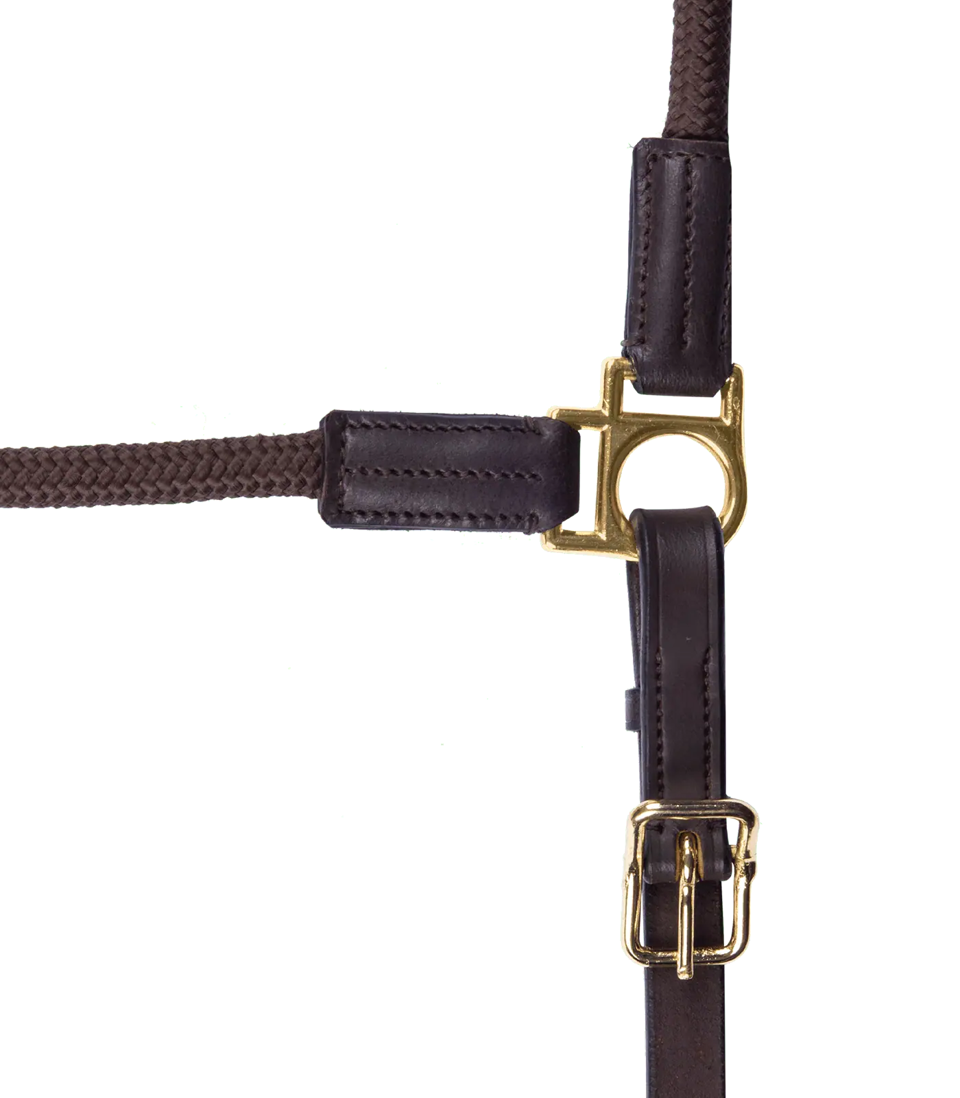 Attractive leather halter with soft leather in headpiece area and attractive rope accents. Easy to adjust at headpiece as well as chin strap.