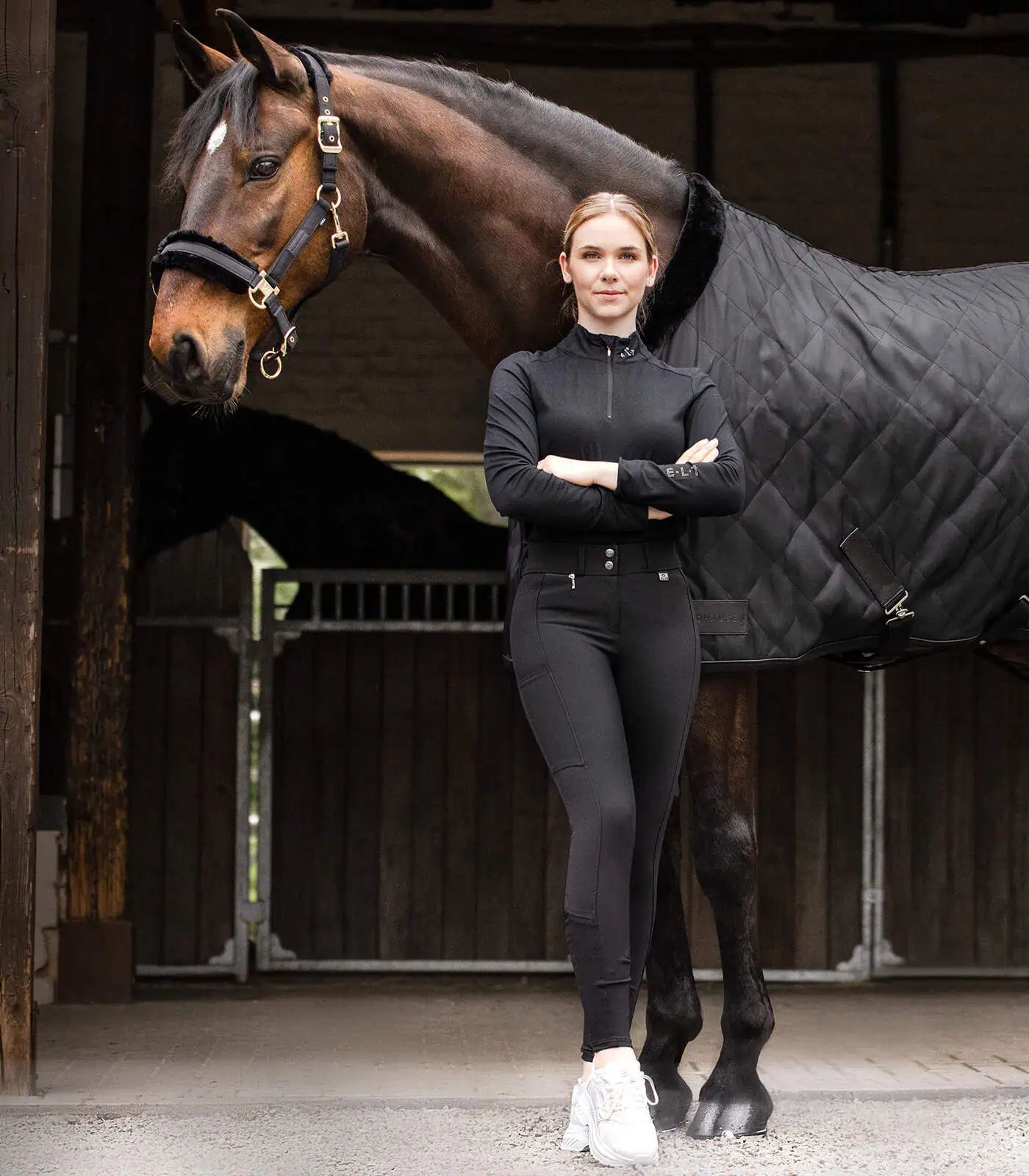Quality halter, with an elegant satin covering. The halter is lined with synthetic fur on the noseband and headpiece and so provides a high degree of wearer comfort. With gold-coloured fittings. Matches our Exclusive rug collection.