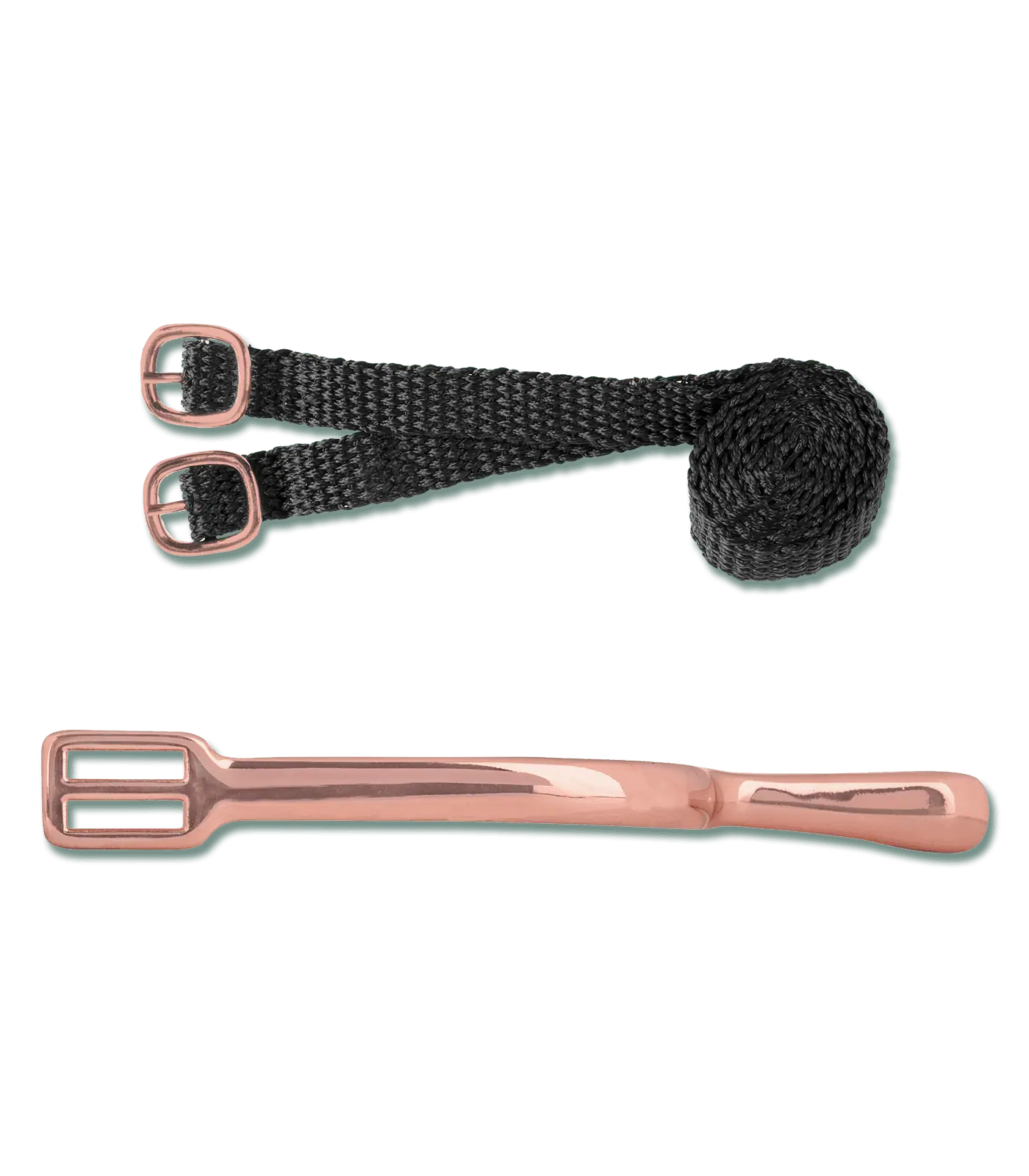 High quality stainless steel spurs in rose gold alloy. Perlon straps with stainless steel buckle in rose gold. Pair.