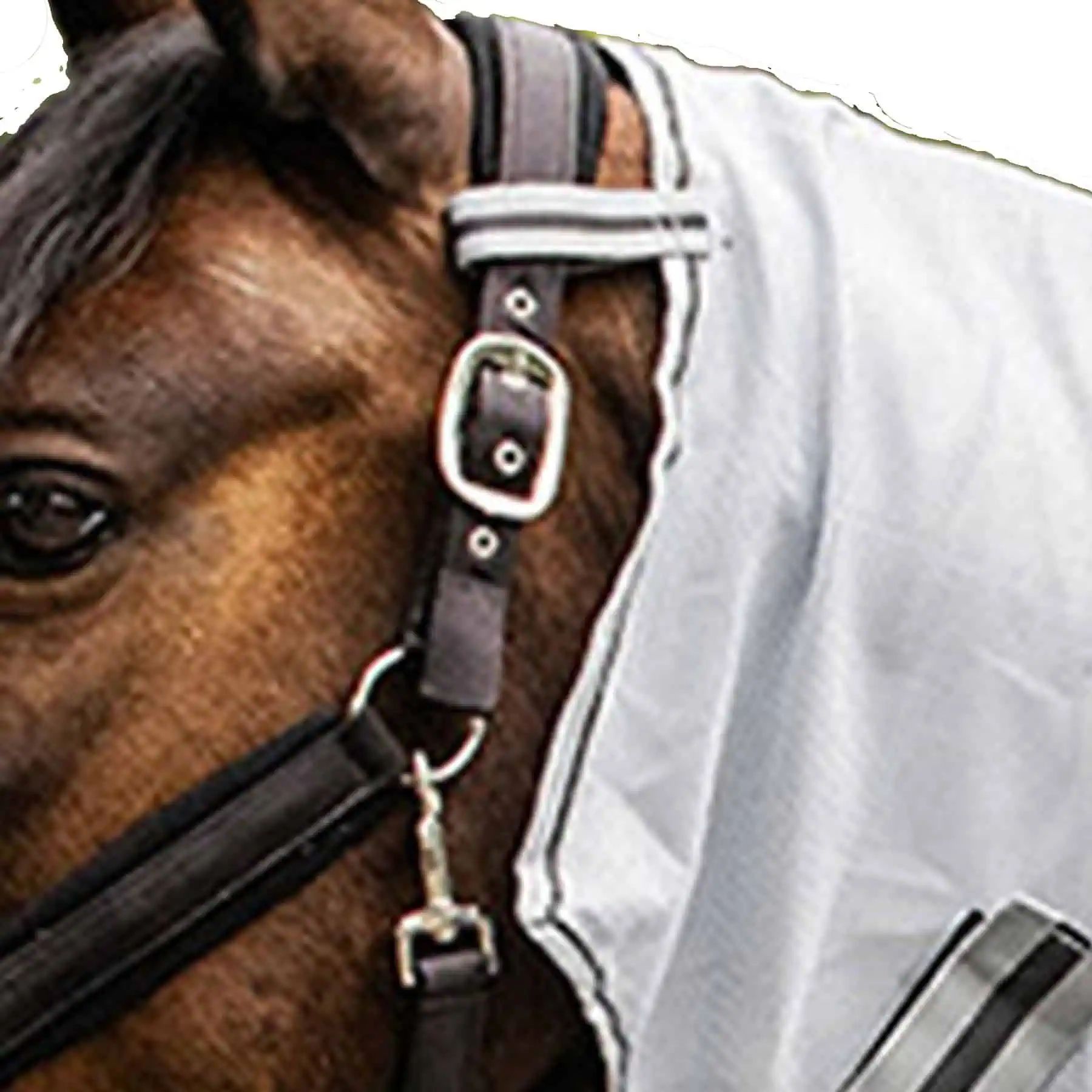 High quality neck piece made of finely meshed fabric to protect neck and mane from annoying insects. Features three strong touch tape fasteners and attachment straps for halter or bridle. Perfectly matches our fly rug 631430.. and exercise sheet 631520...