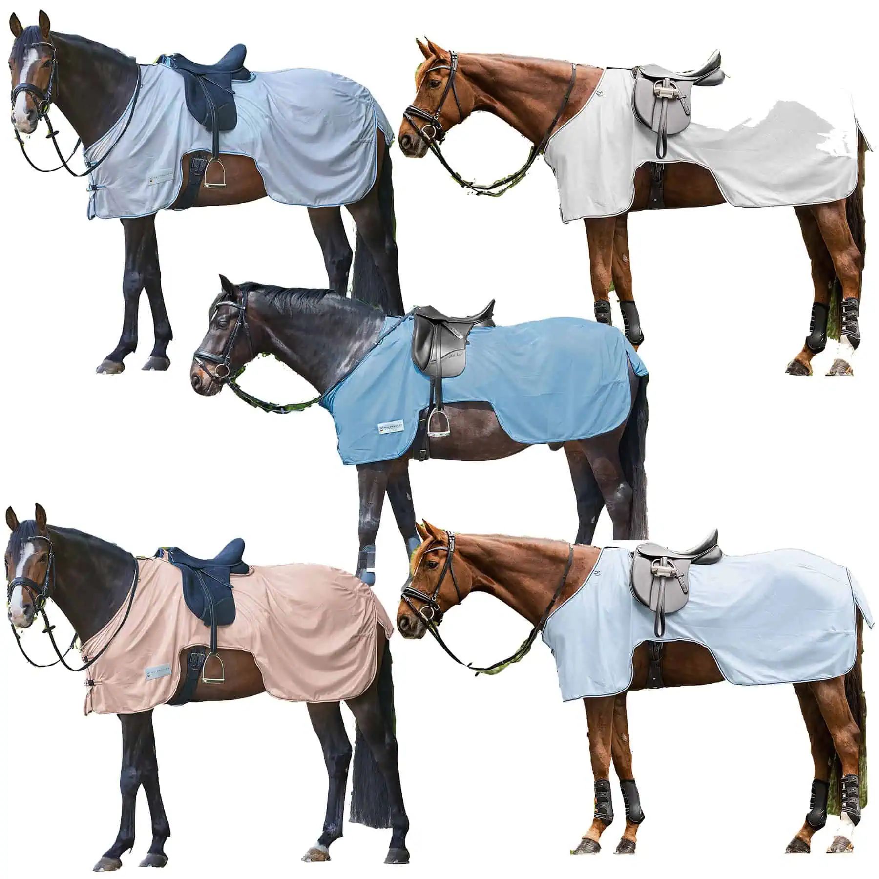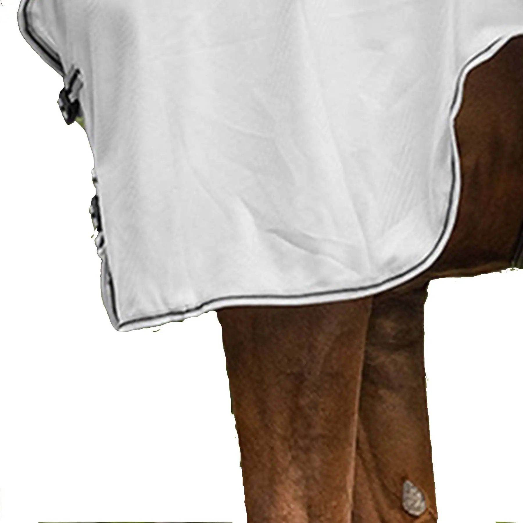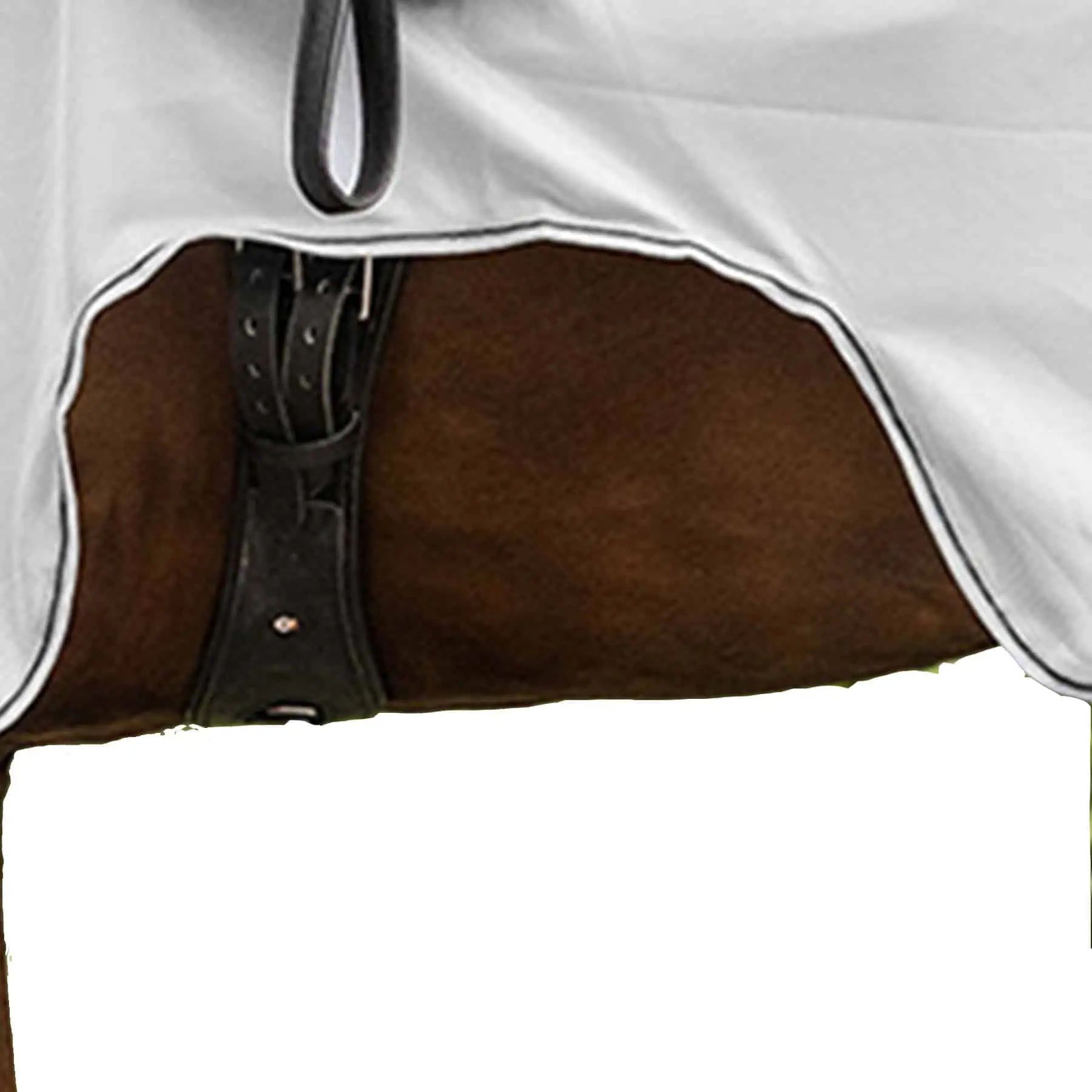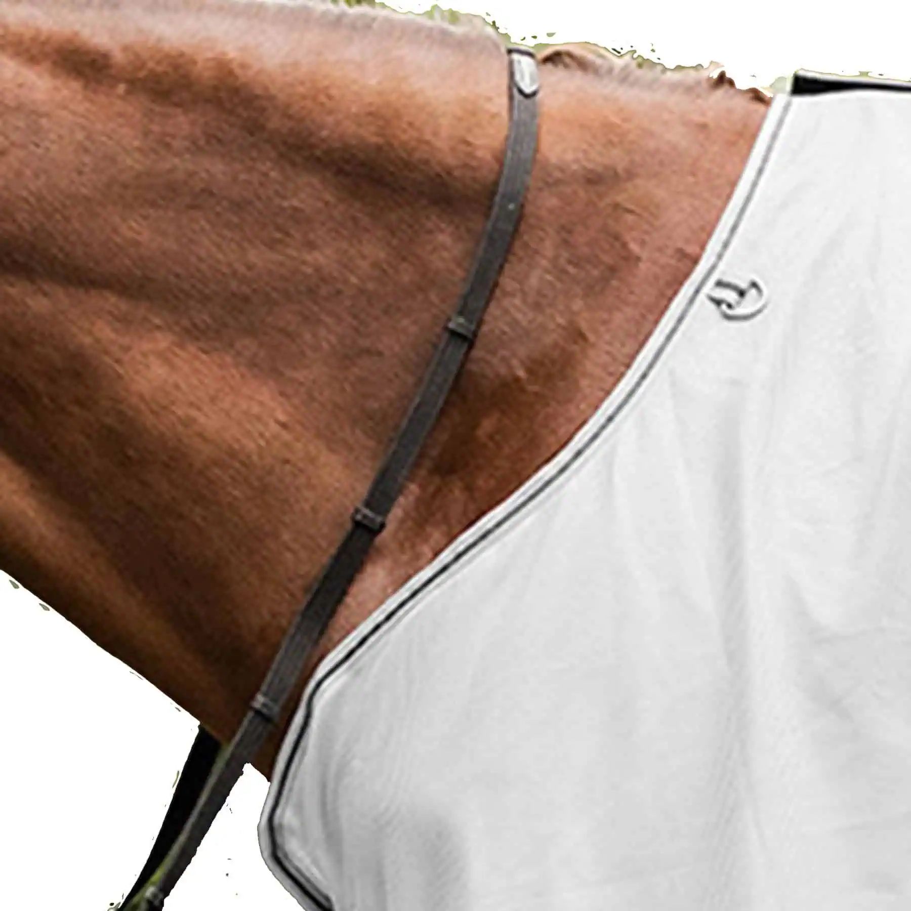 High quality exercise sheet made of finely meshed fabric to protect against annoying insects. With double front fasteners and rings to attach the neck part ( 631440..). Touch tape fastening at withers for opening.