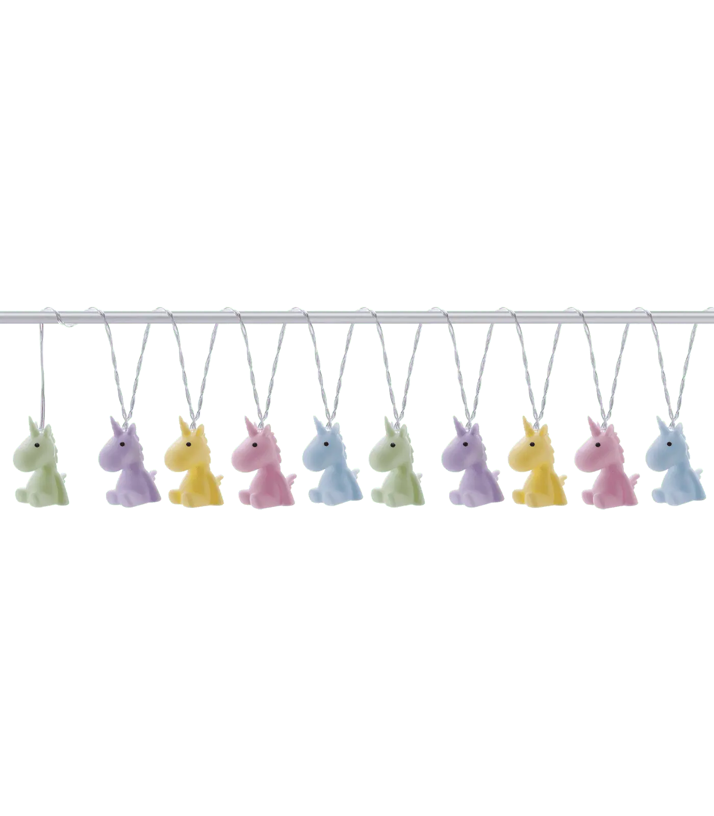 In the warm light glow 10 pastel coloured unicorns. Perfect for decorating a child"s room and living area. Operated by battery, 3 x AA. The batteries are not supplied. Gift box. From 3+ years.