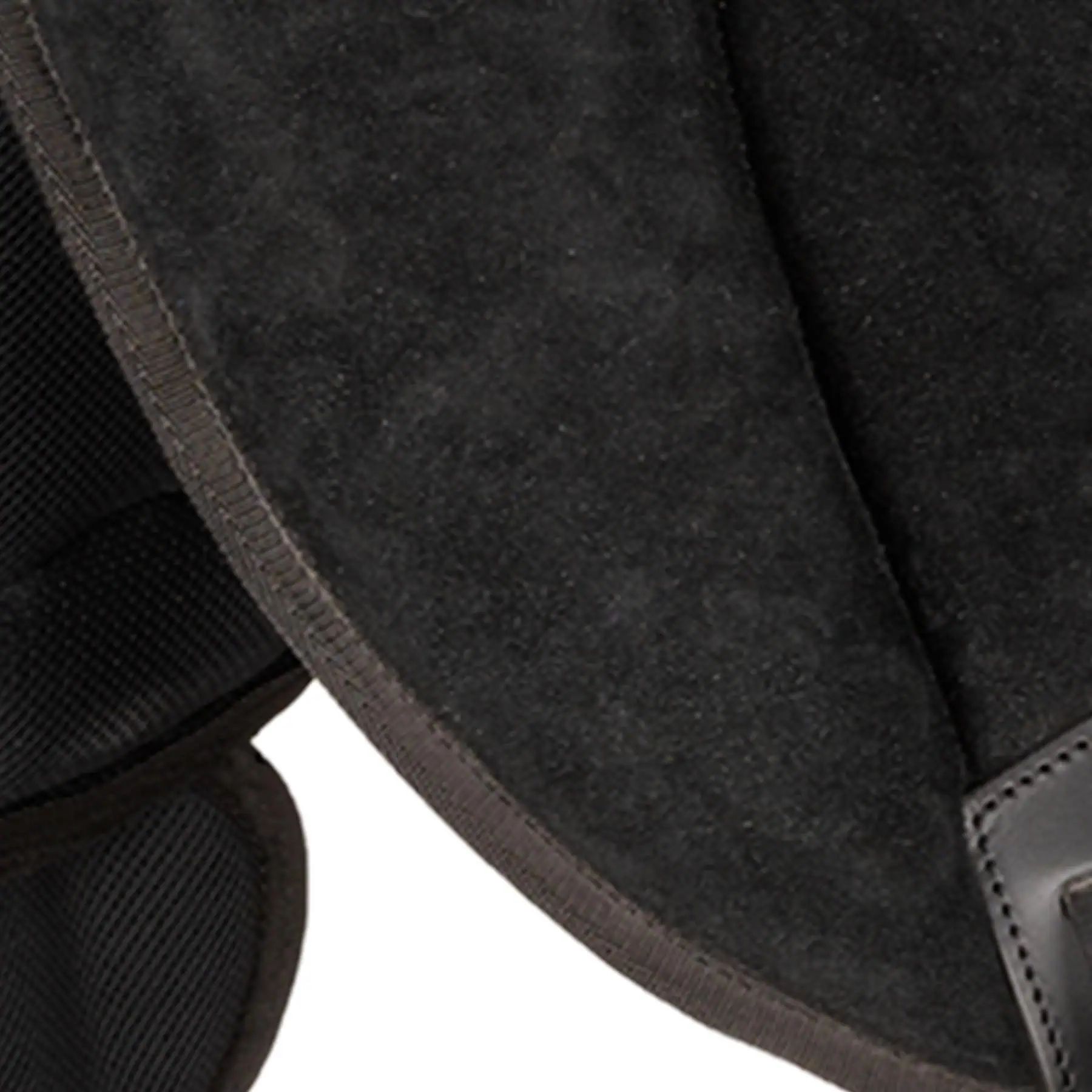 Anatomically shaped riding pad which provides a particularly good hold with its suede surface and its leather grab handle. The thick foam padding is stable under pressure and shock-absorbing whilst, at the same time, having an non-slip effect. The soft cushioning and room for the withers makes the riding pad very comfortable for the horse"s back.
