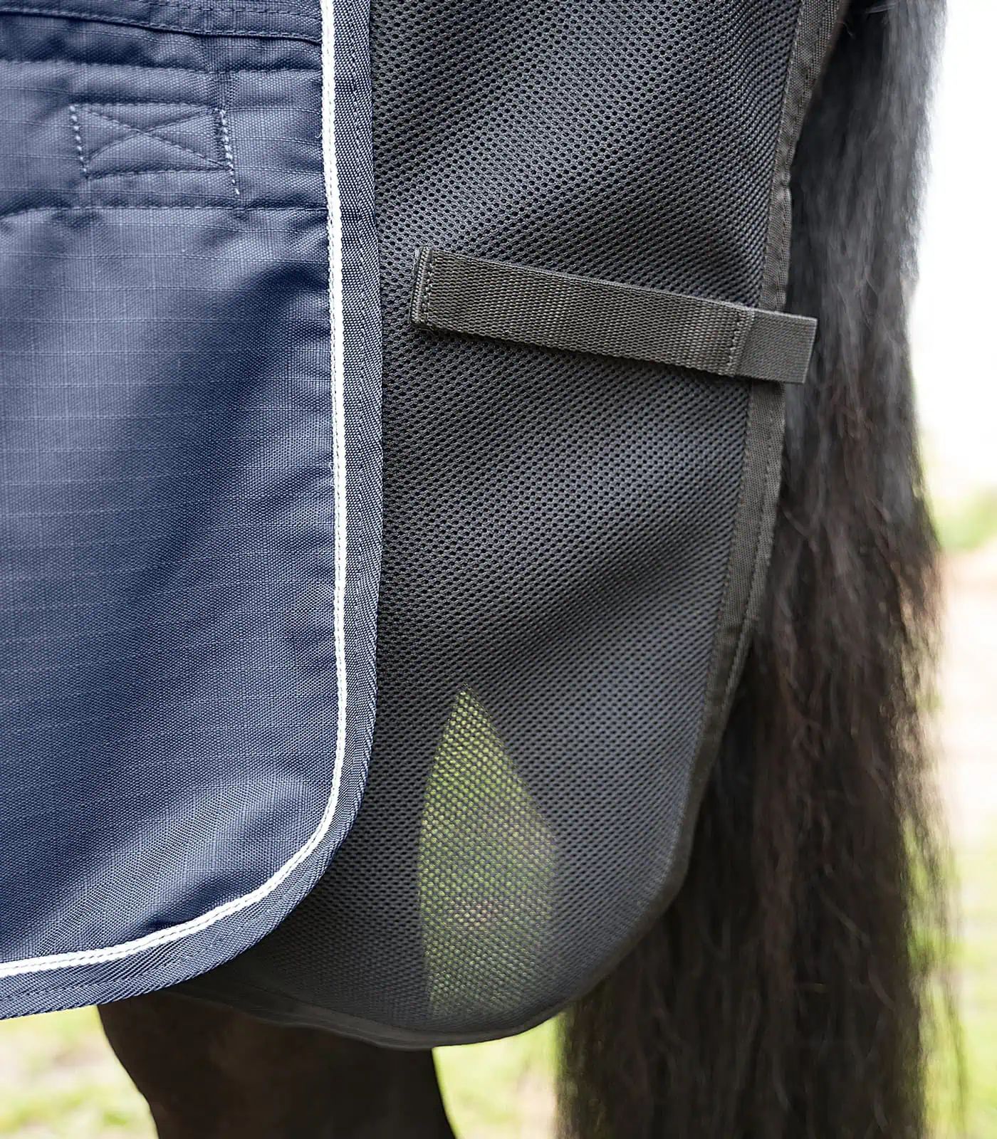 A particularly breathable underrug in air mesh fabric. The high tech material provides good ventilation and a wicking away function, at the same time as keeping the horse warm. Likewise, the air mesh fabric can prevent heat from building up. With a simple chest T-fastener, and 2 elastic touch tape fasteners both in the shoulder and hindquarter areas for ease of attaching to all Waldhausen Economic, Comfort and Premium outdoor rugs. This underrug is ideally suited for greatly fluctuating temperatures.