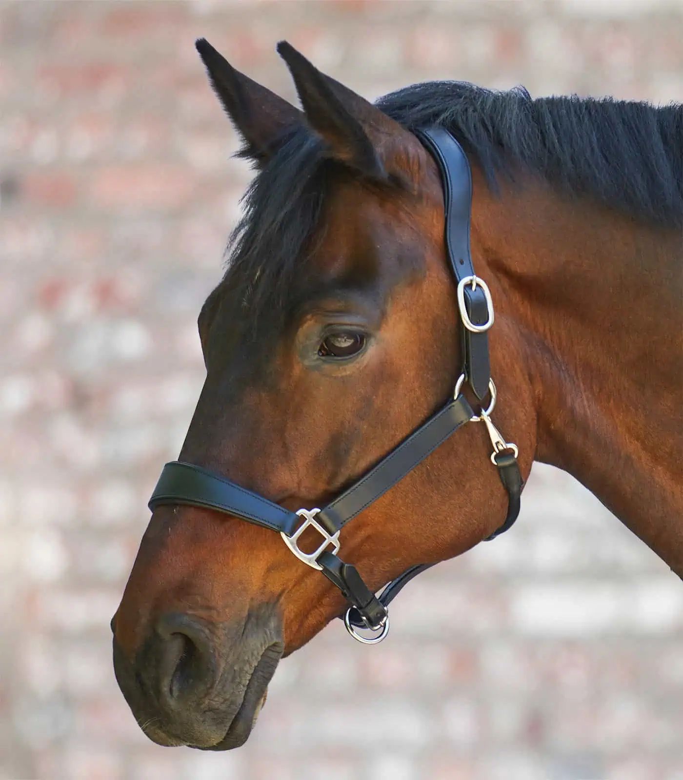 Elegant leather halter with anatomically shaped headpiece, adjustable on both sides. Softly padded noseband and headpiece as well as round-stitched throat lash. High quality fittings. Easily adjustable chin strap.