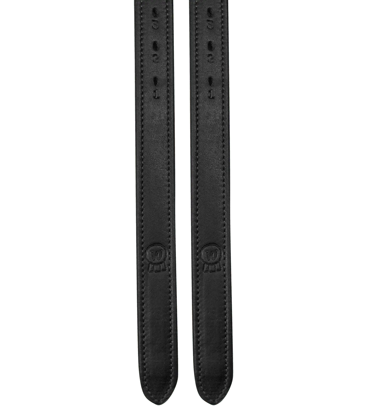 Stirrup leathers in soft, oiled leather with sturdy stainless steel buckle. The nylon inner core prevents stretching and unevenness. Pair.