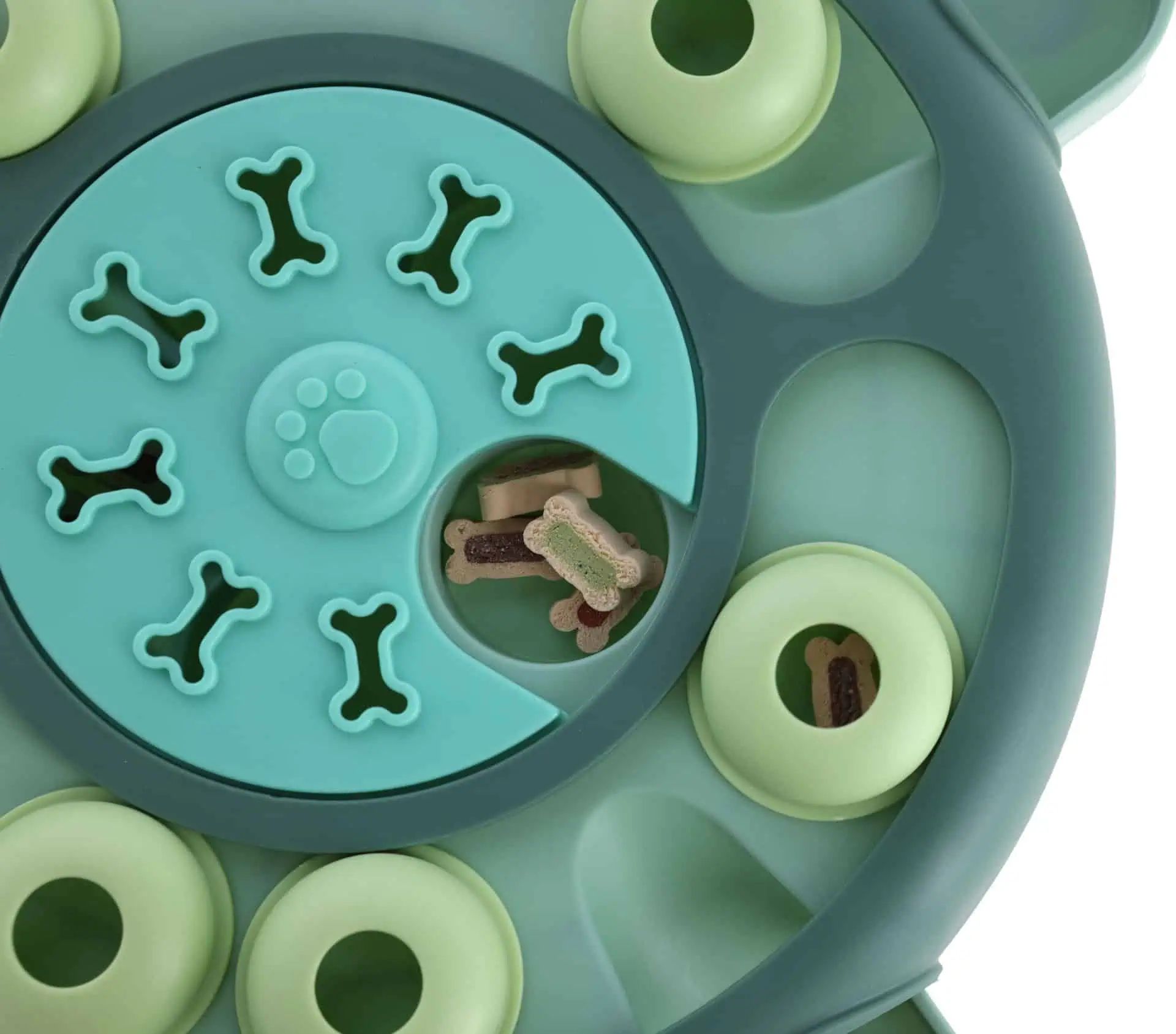 Made from durable and antibacterial polypropylene plastic, the toy is not only long-lasting but also safe for your pet. It is easy to clean thanks to its smooth surfaces and removable caps and spinning plate. Additionally, rubber nubs on the bottom ensure a non-slip stand, keeping the toy in place during use. Measuring 25 x 28 x 5 cm and featuring an attractive turquoise color, the Turtle is a visually appealing addition to any setting.