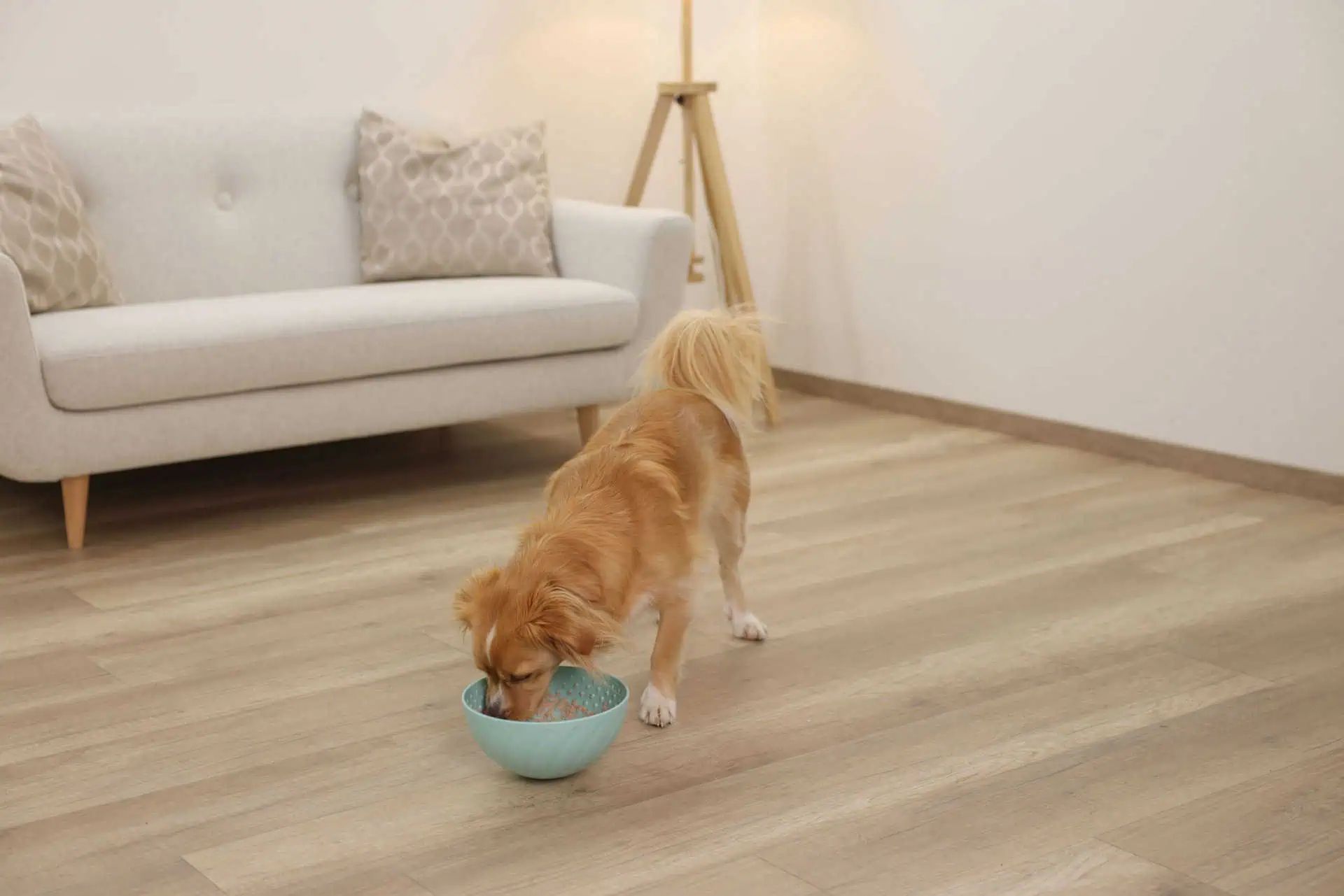 The Lick Bowl is spread with wet food, pastes, or creams. The special surface texture and the rounded bottom ensure that your pet eats more slowly while being playfully engaged.