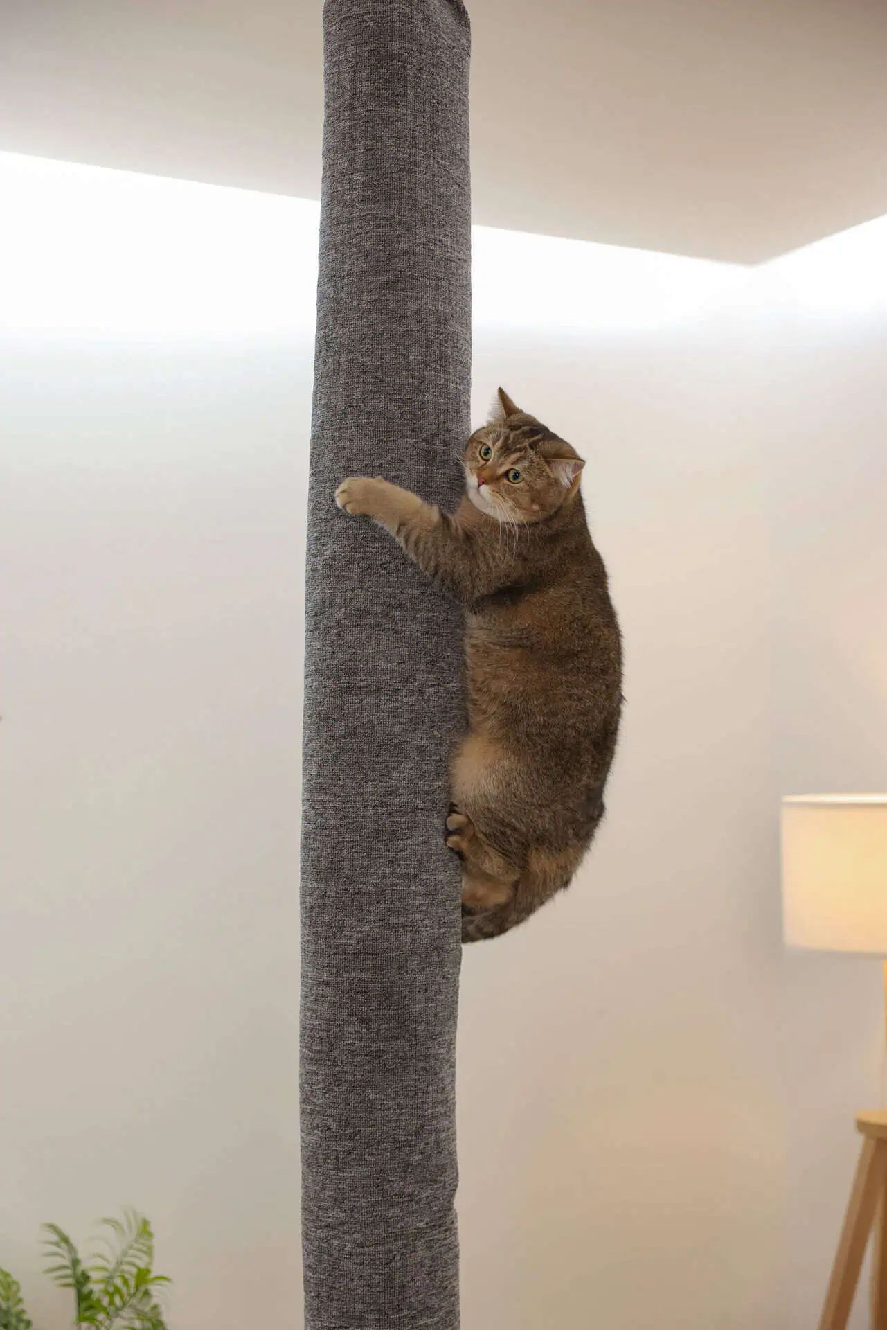 The Climbing Bag Carpet not only provides an ideal climbing spot for your cat, but also serves as a scratching surface for claw care, protecting your furniture and carpets from unwanted scratching attacks. Made from durable polyester carpet fabric and filled with padded cushions, the Climbing Bag is particularly long-lasting and resilient. Thanks to the variable fastening rope, the length can be individually adjusted, allowing the bag to be attached to ceilings, stairwells, or galleries. The Climbing Bag can also serve as a playful climbing aid for your cat to reach higher levels, e.g., in the stairwell or as an extension of existing climbing walls.