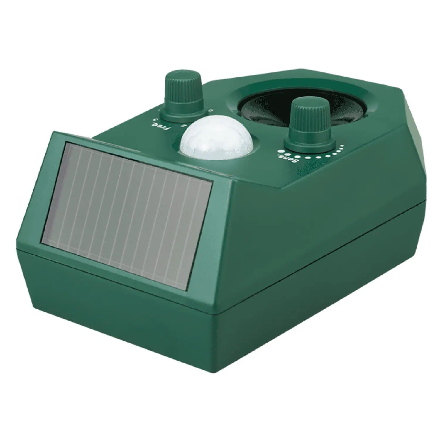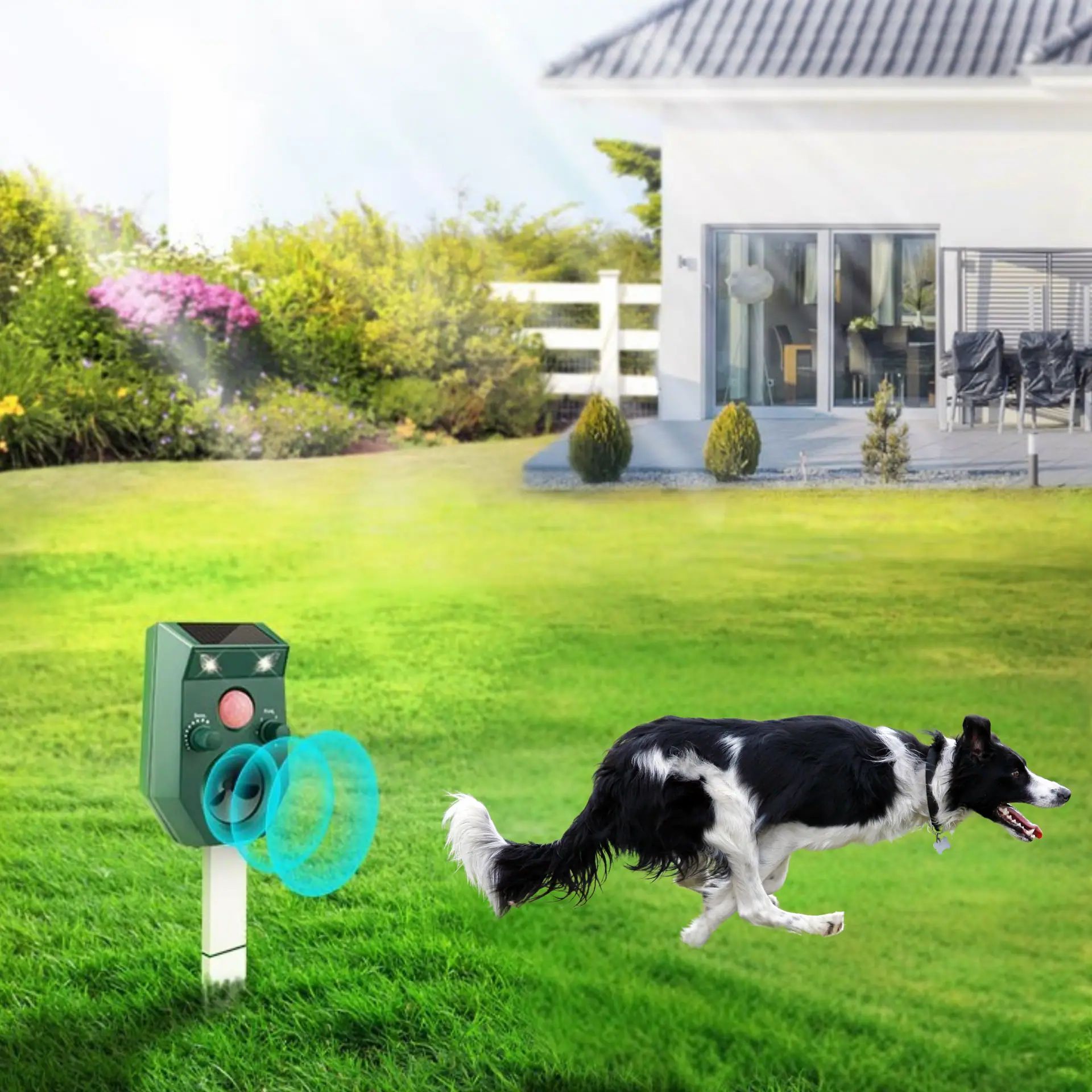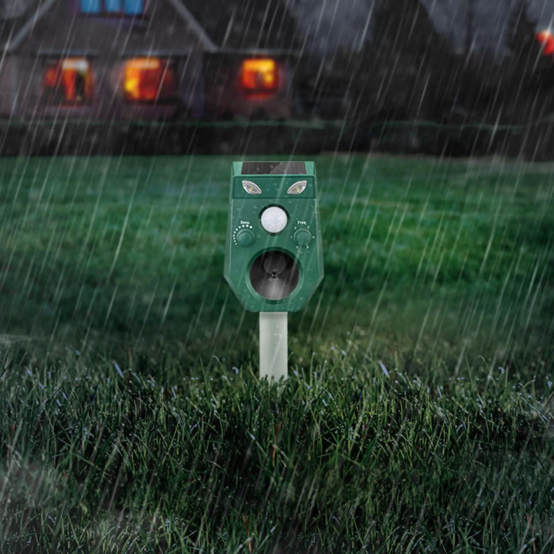The repeller emits ultrasound waves and flashing lights that are activated when an animal enters the area. These signals effectively repel the animals without harming them.