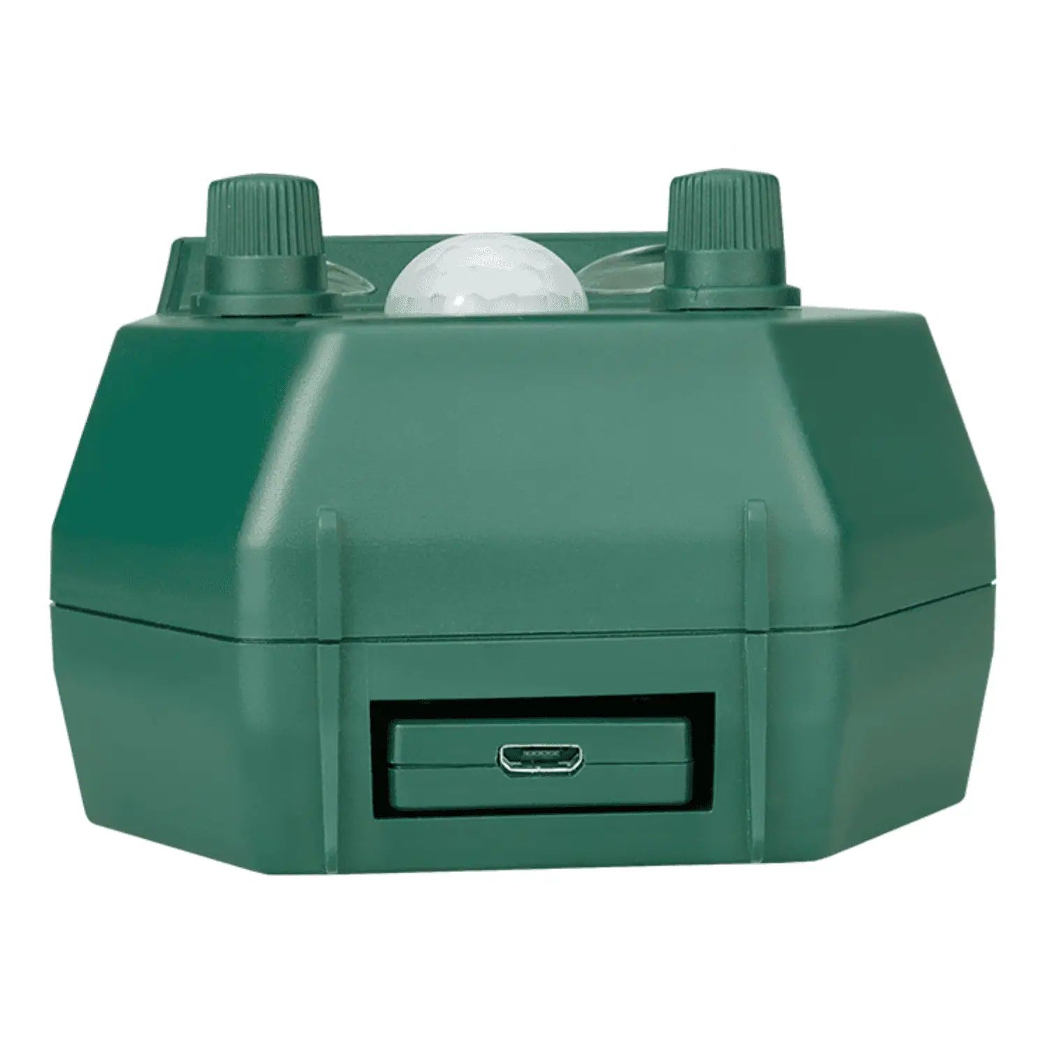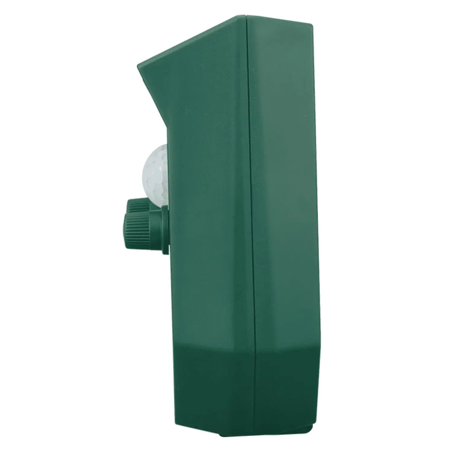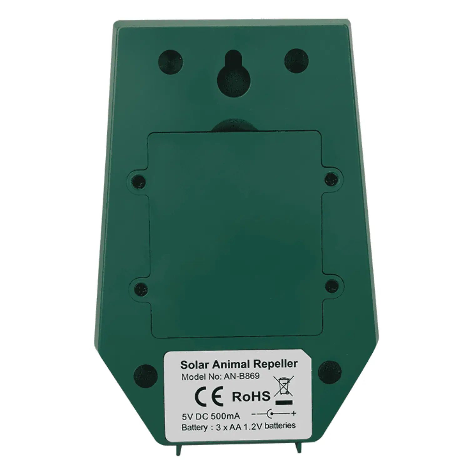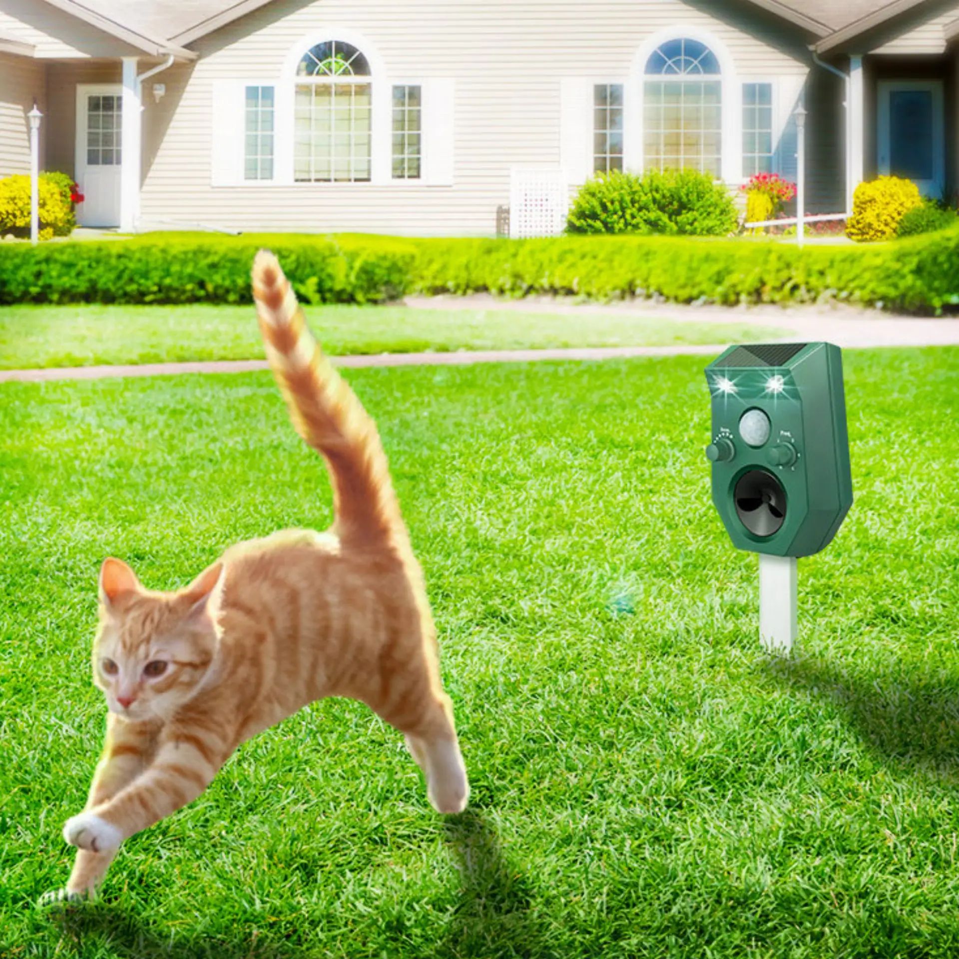 The repeller emits ultrasound waves and flashing lights that are activated when an animal enters the area. These signals effectively repel the animals without harming them.