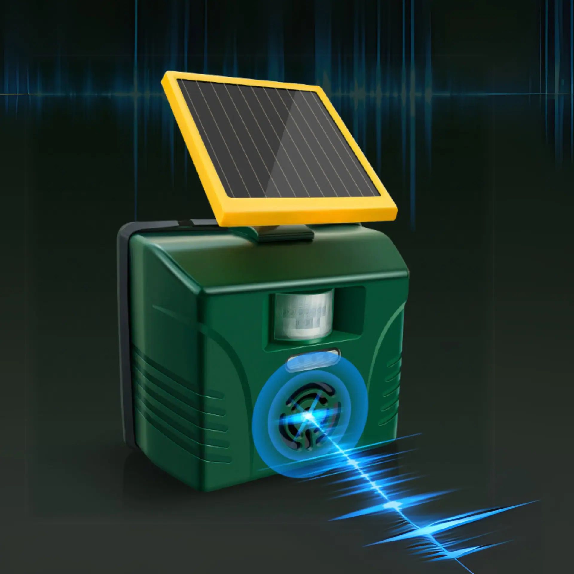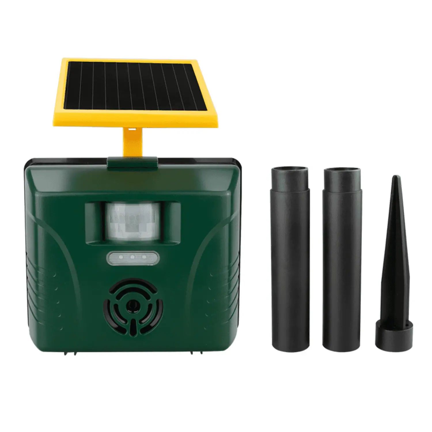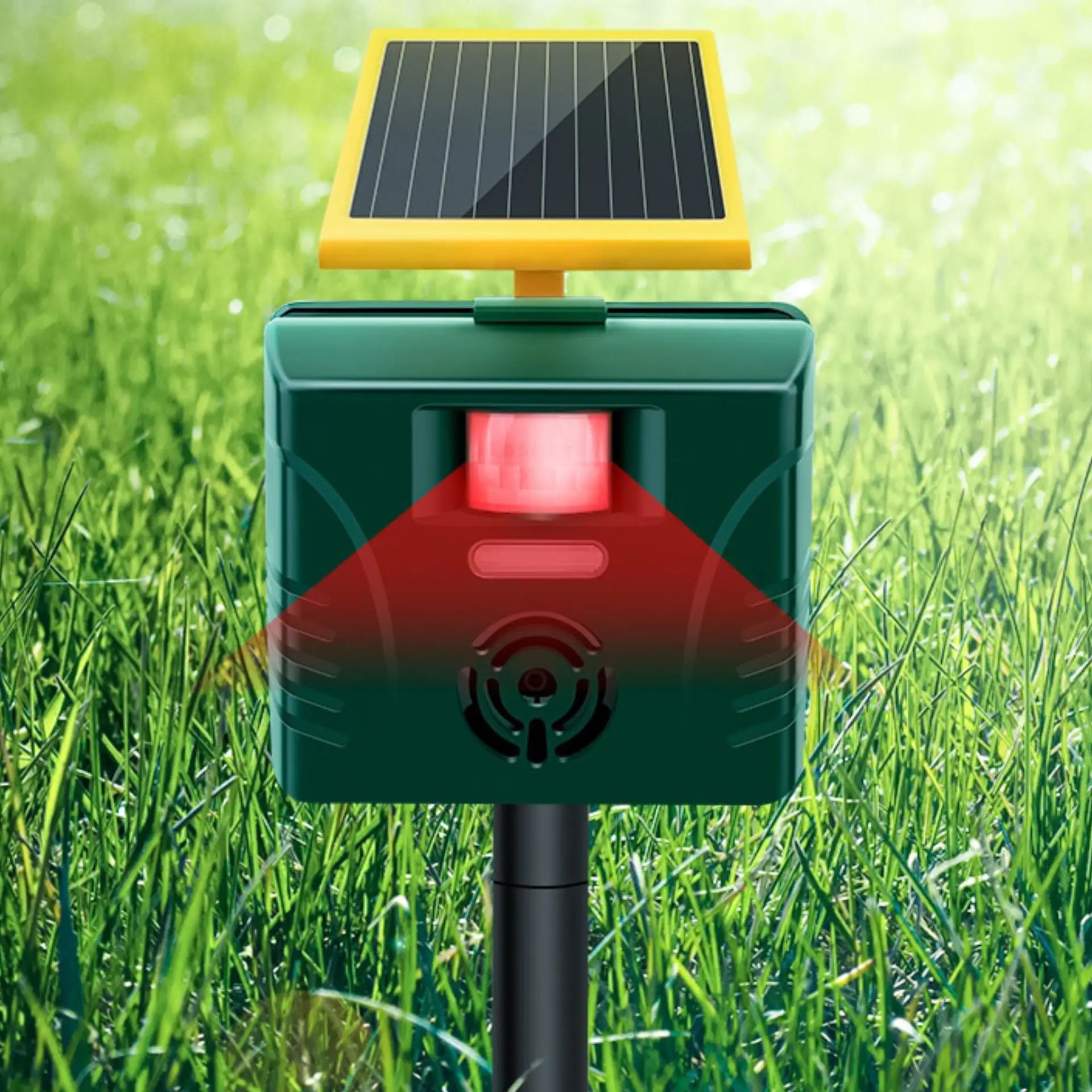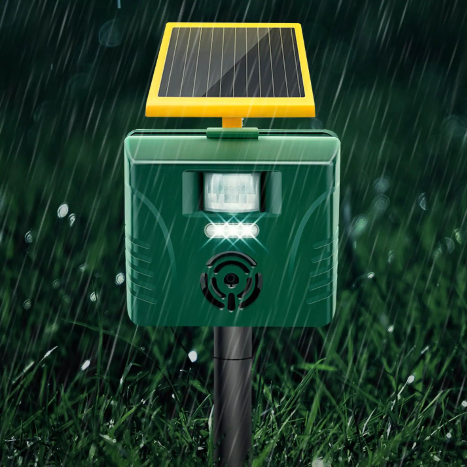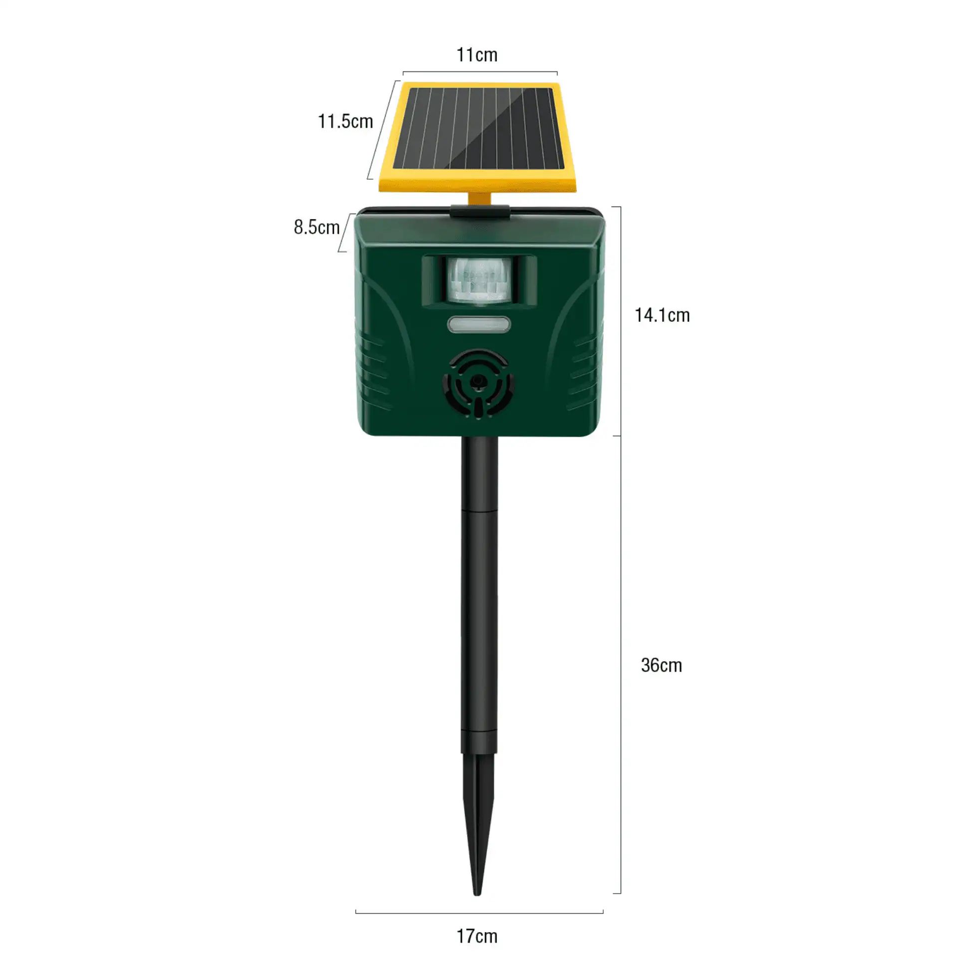 The Ultrasonic Animal Repeller Solar Plus offers an effective and eco-friendly method to keep animals away from your property. With a combination of PIR detection, ultrasound, strong flashlight, alarm, and chicken and animal sounds, the device ensures that unwanted visitors such as pigeons, birds, or other animals are deterred. Thanks to variable frequency, animal habituation is prevented, increasing effectiveness. The Multifunctional Animal Repeller is 100% eco-friendly and non-chemical, ensuring that neither humans nor pets are harmed. The device is IPX4 waterproof and ideal for outdoor use.