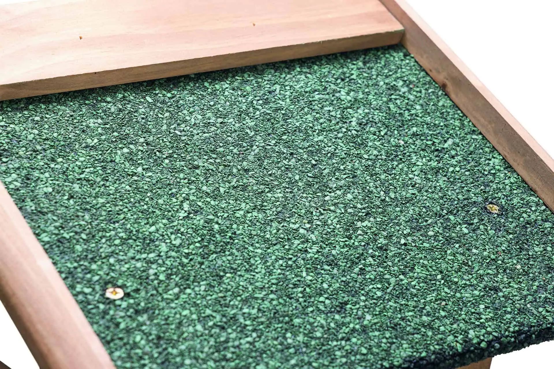 Yes, the Birdhouse RIO is equipped with a weatherproof bitumen roof that protects it optimally against weather influences. This ensures your feathered friends are well sheltered even in bad weather.