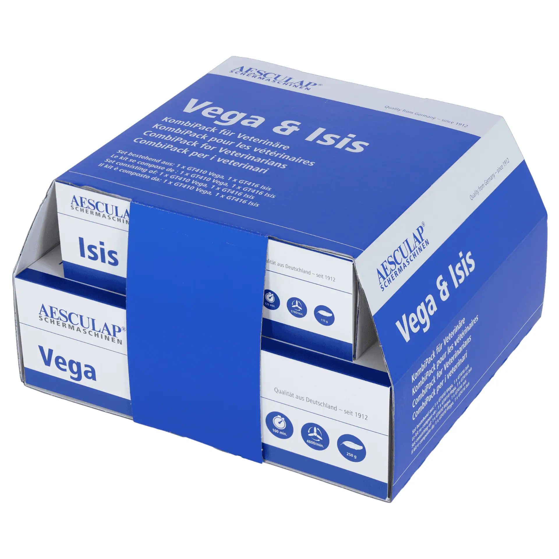 The set is not only functional but also ergonomically designed, so you can work comfortably even during extended use. The combination of the Vega for larger areas and the Isis for small areas makes this set an indispensable tool for veterinarians who value quality and efficiency. The Aesculap Clipper Set is made from high-quality materials and complies with labeling regulations, ensuring you can rely on the safety and longevity of the products.
